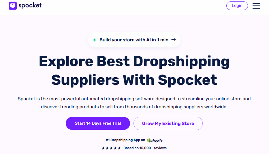 Spocket connects entrepreneurs with high-quality suppliers in North America and Europe, offering fast shipping and premium products.