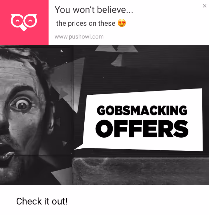 As notificações push têm um limite de caracteres, garantindo que os lojistas mantenham suas mensagens curtas e diretas. Isso significa que cada promoção é específica e leva pouco tempo para ser lida. Além disso, os proprietários de lojas podem adicionar botões para incluir CTAs que fazem com que os assinantes ajam rapidamente na notificação push.