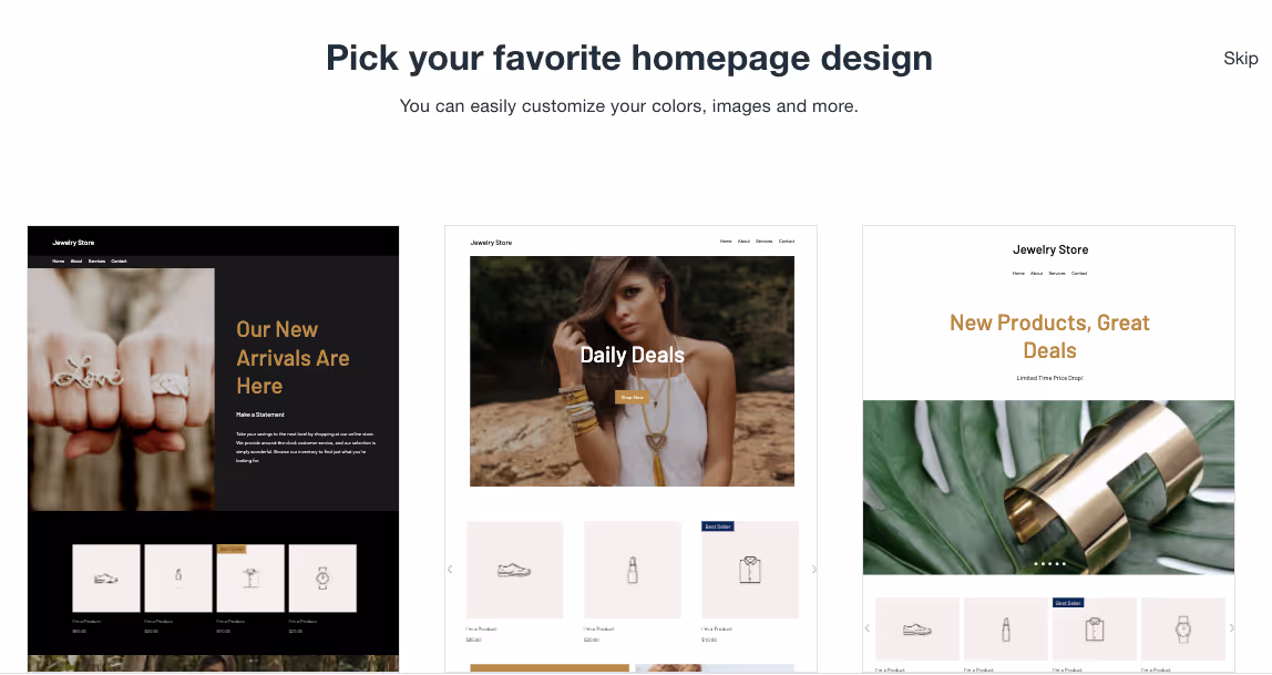 Como as lojas Wix são totalmente gratuitas até você colocá-las no ar, você pode até mesmo experimentar vários designs ao mesmo tempo!