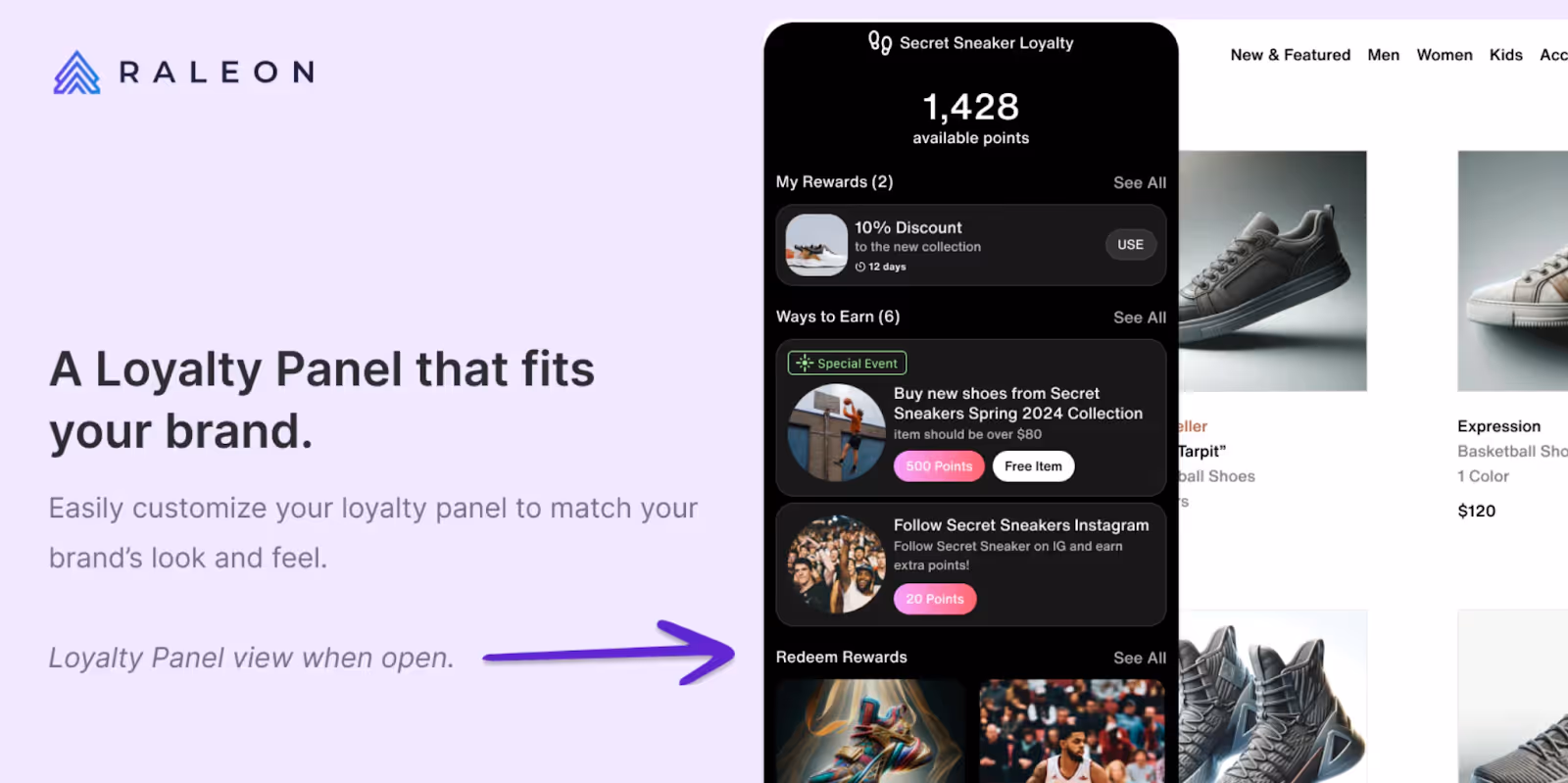 Mit Raleon können Sie personalisierte Prämien erstellen, Punkte verwalten und Kundenanreize einrichten. Es verfolgt auch das Engagement und die Kundenbindung und macht aus neuen Käufern treue Stammkunden.