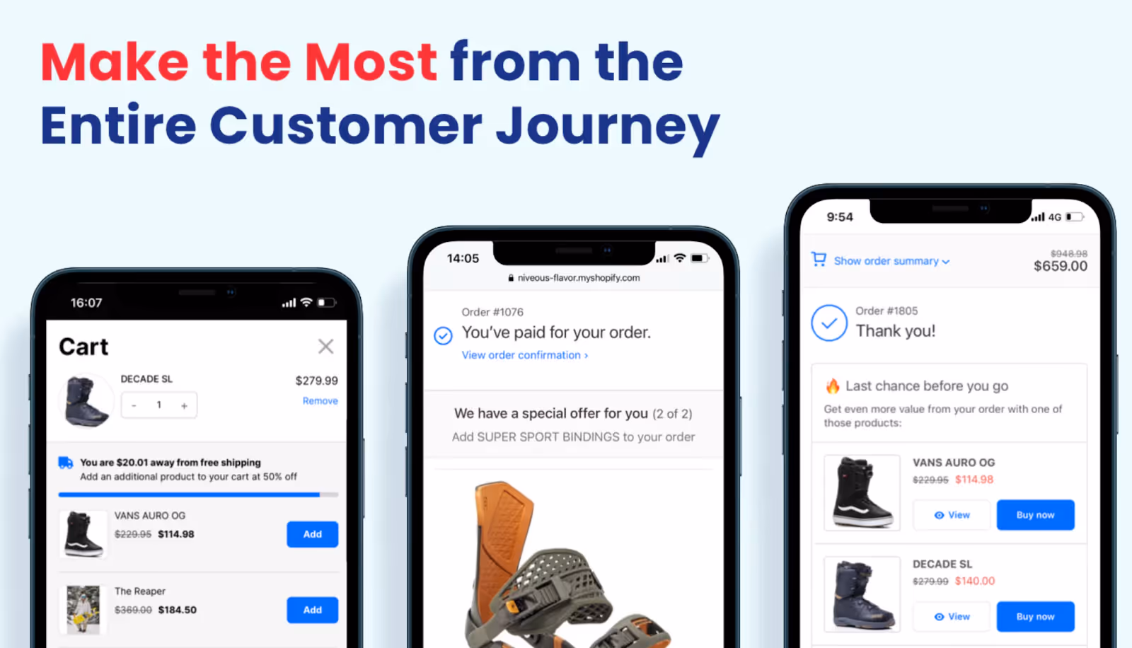 - Warenkorb-Upselling, Danke-Seiten-Upselling und Cross-Selling, um Bestellungen zu erhöhen.