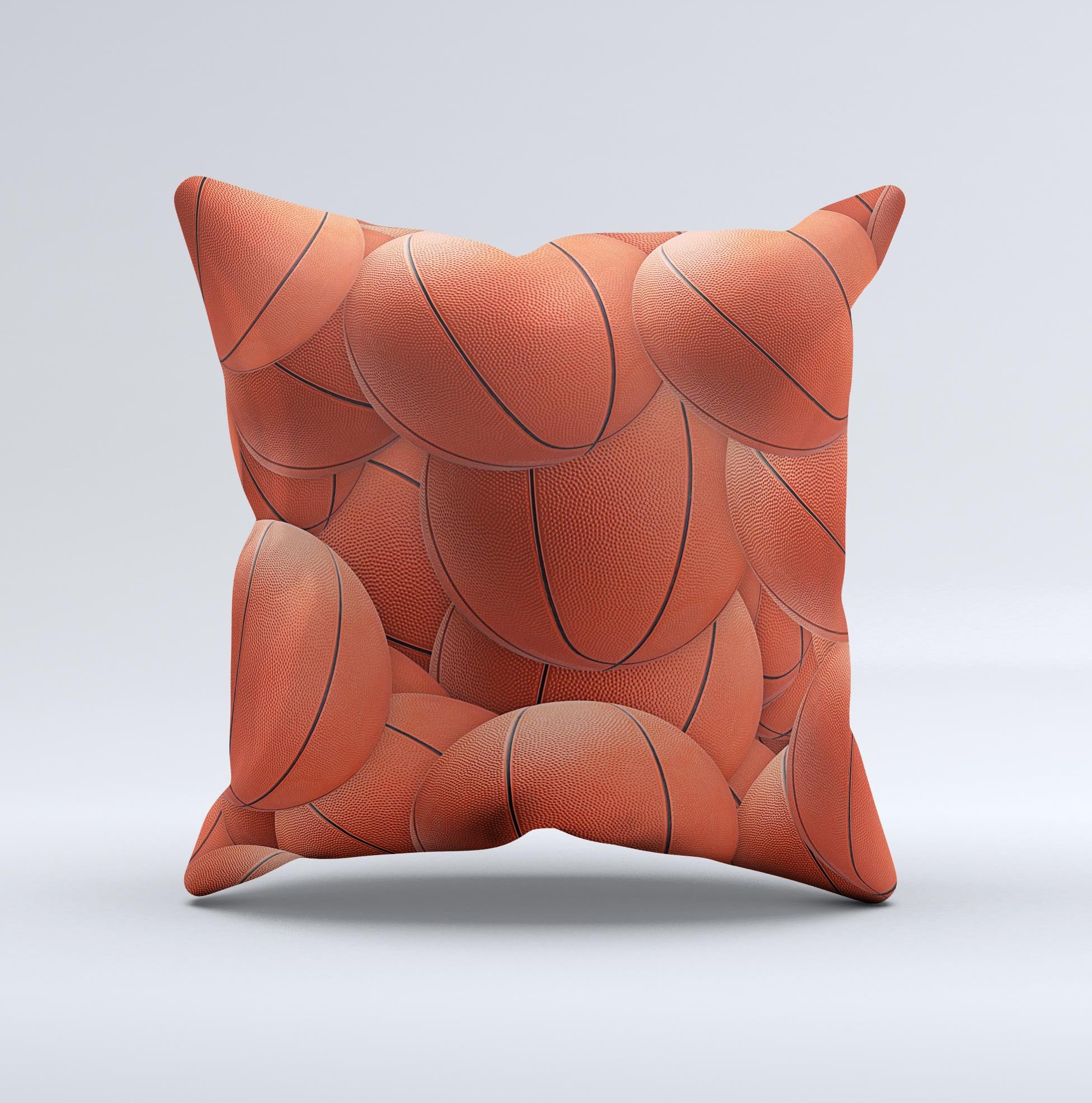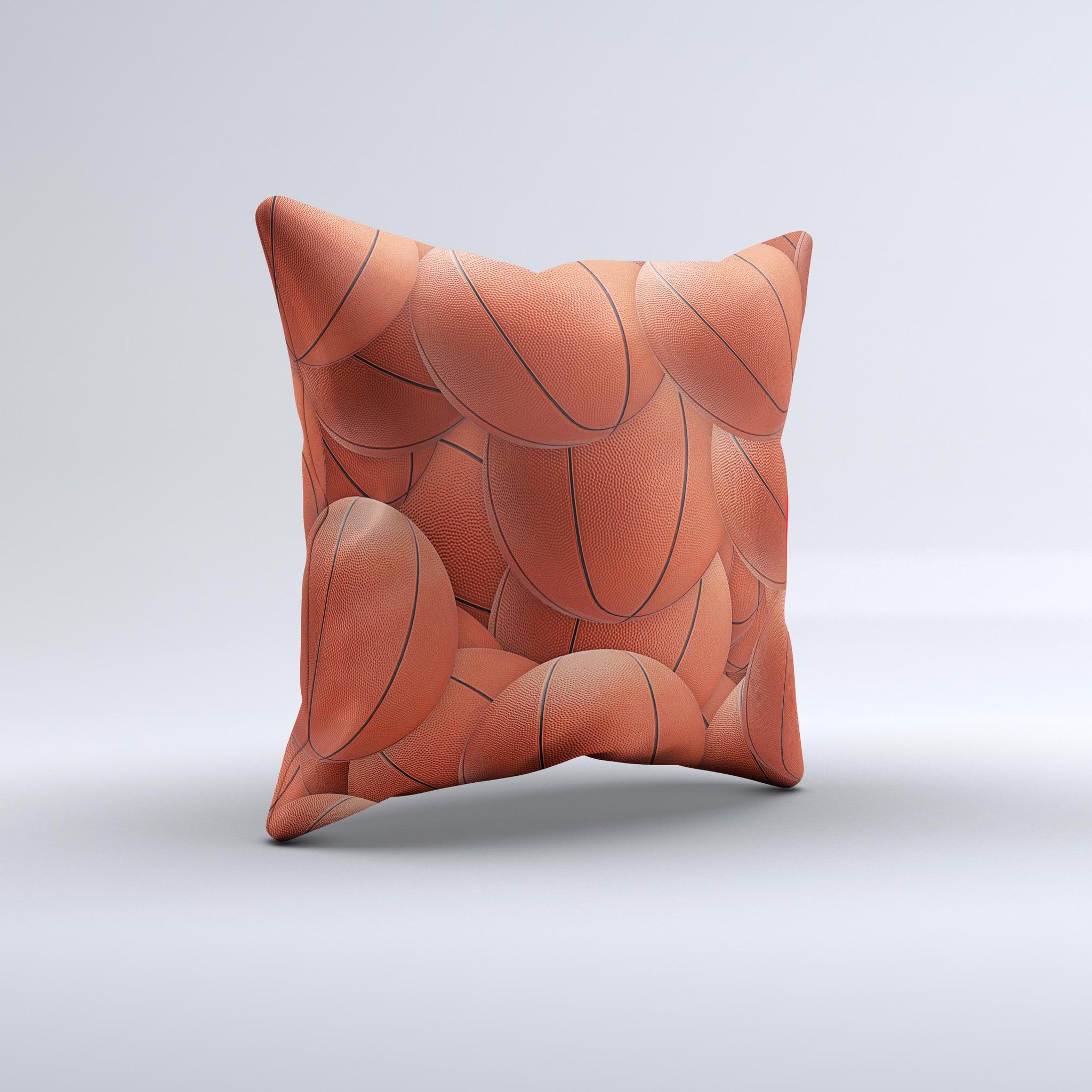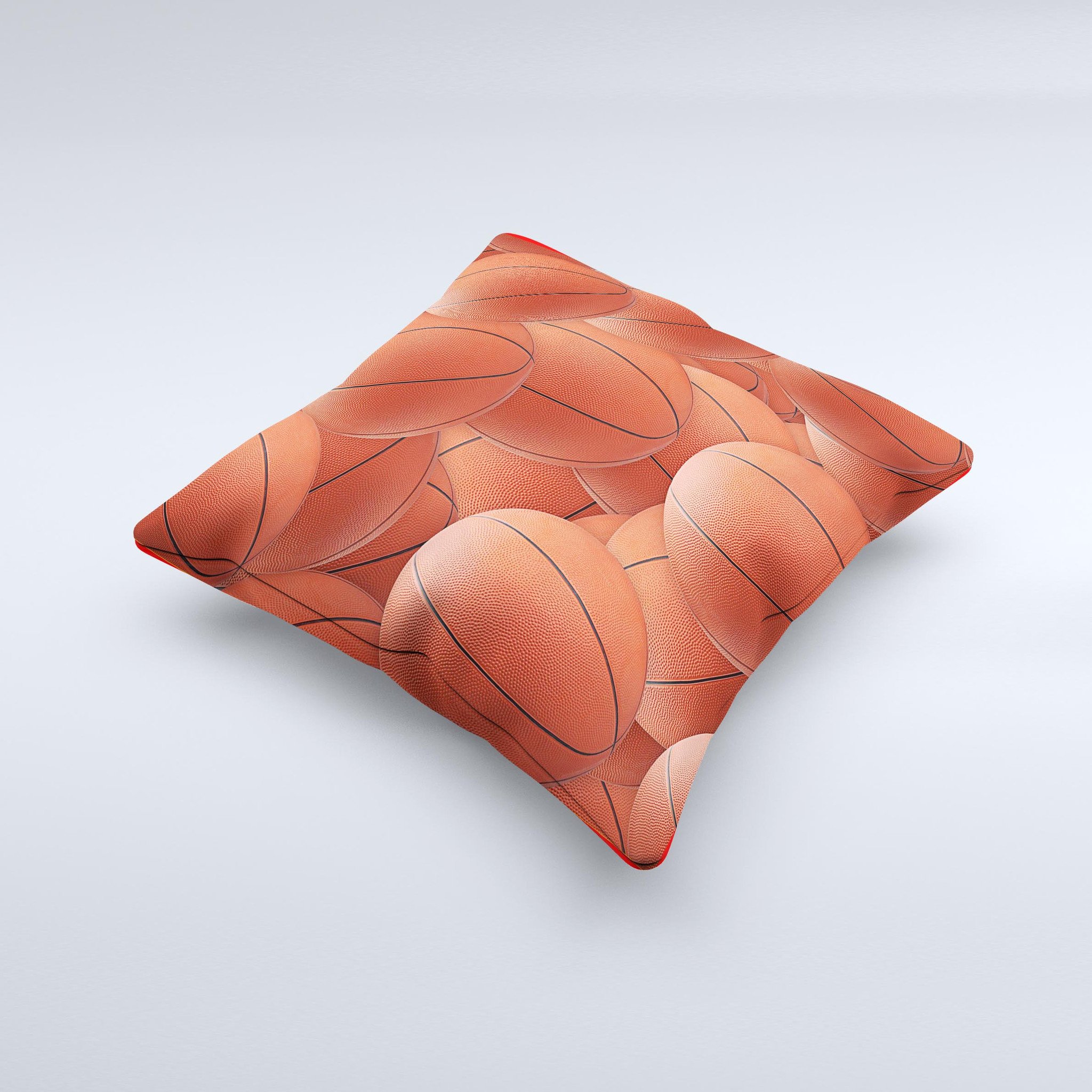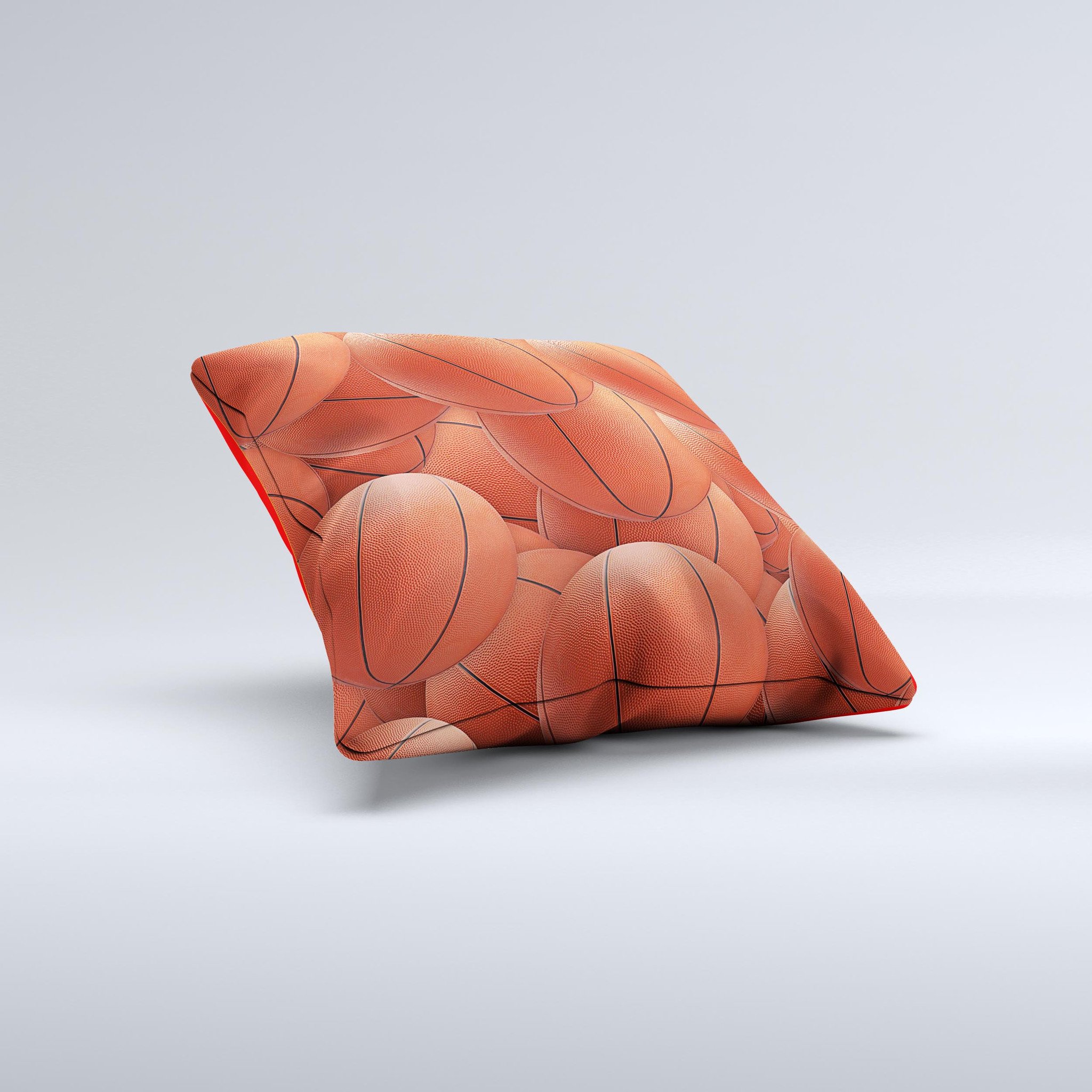 Our Basketball Overlay Ink-Fuzed Decorative Throw Pillow features a high thread count covering, similar to those found in high-end stores. This ensures a soft and luxurious feel, making it a perfect addition to your living room, bedroom, or sports-themed space. The fabric is a blend of poly and cotton, providing durability and comfort.