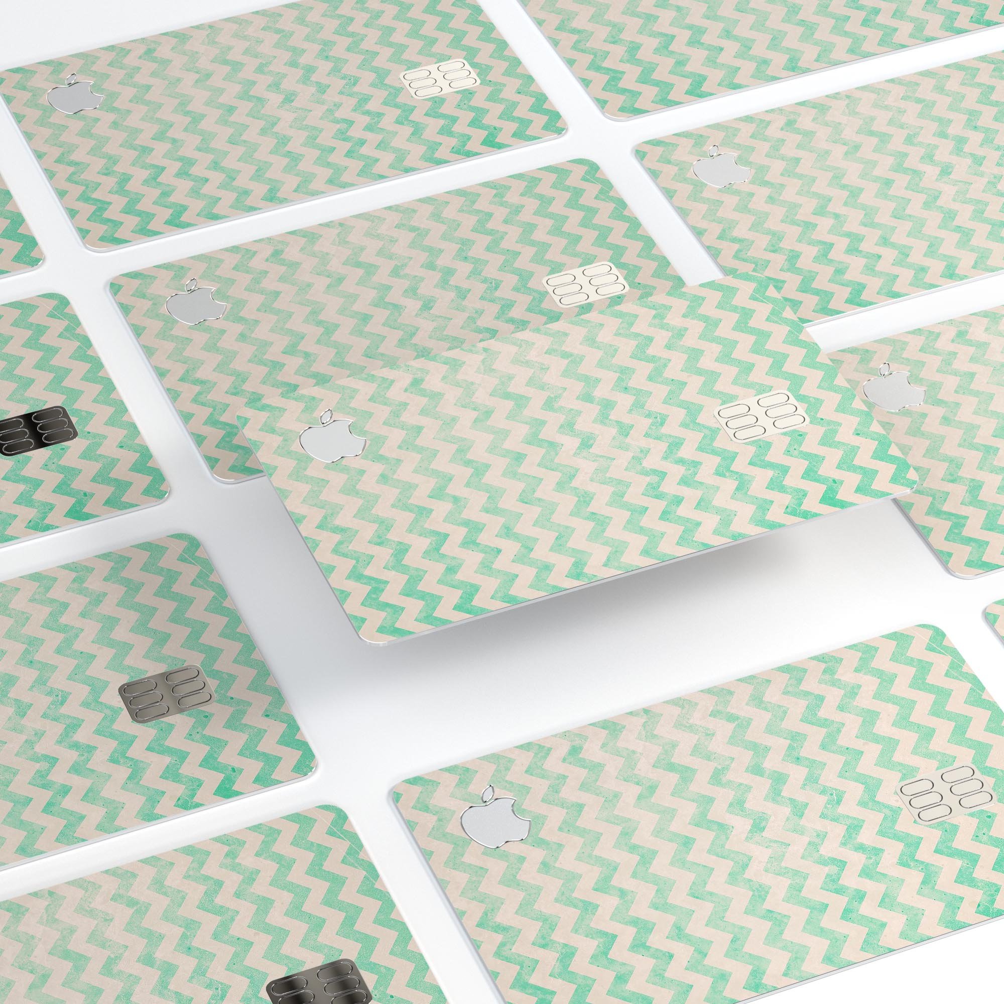 Introducing the Faded Aqua Chevron Pattern - Premium Protective Decal Skin-Kit for the Apple Card. If you own the new Apple Card, you know how important it is to keep it looking pristine. Our premium decal skin kit is designed specifically to protect your card while adding a touch of style with its unique faded aqua chevron pattern. Made from high-quality vinyl, this skin not only enhances the aesthetic appeal of your card but also provides robust protection against daily wear and tear.