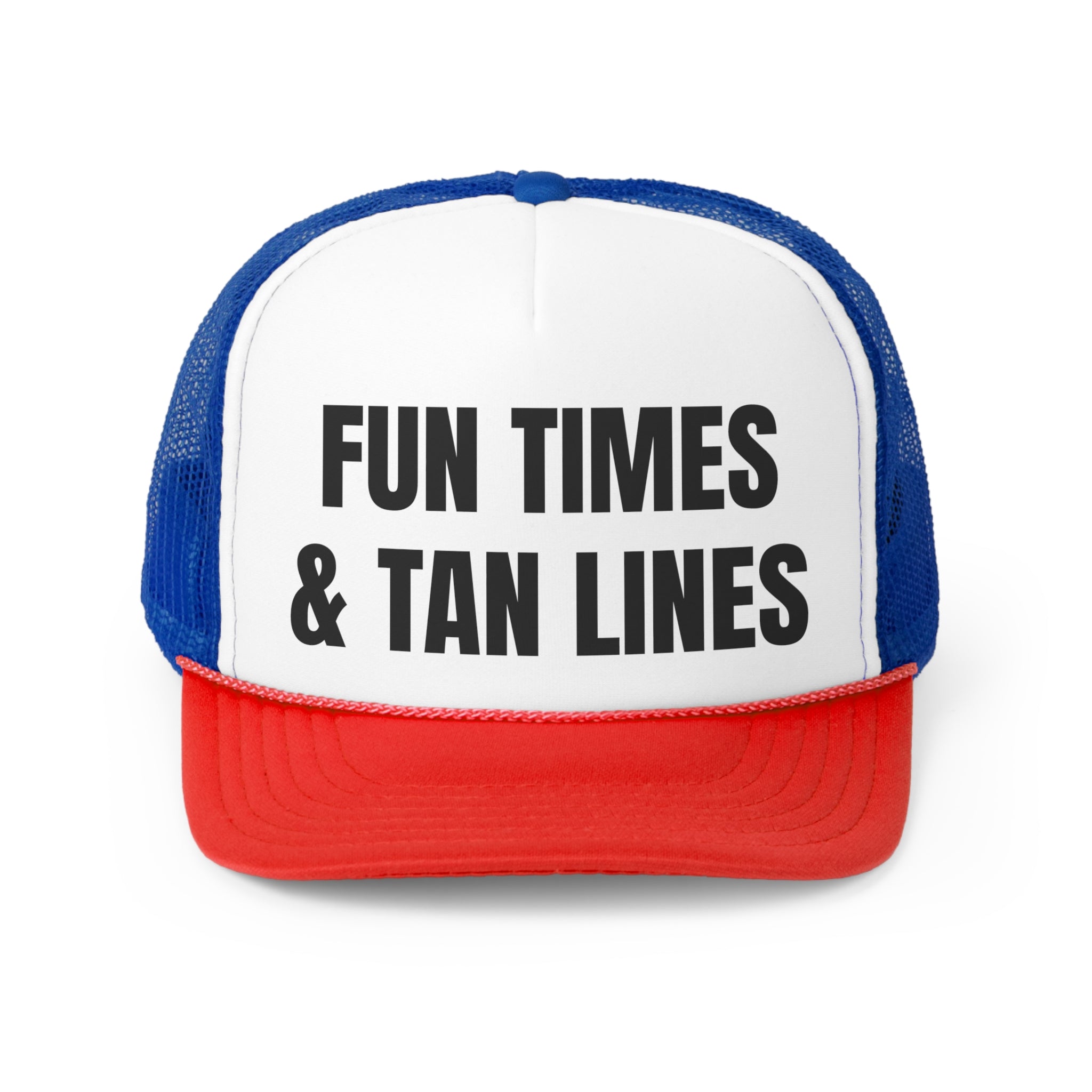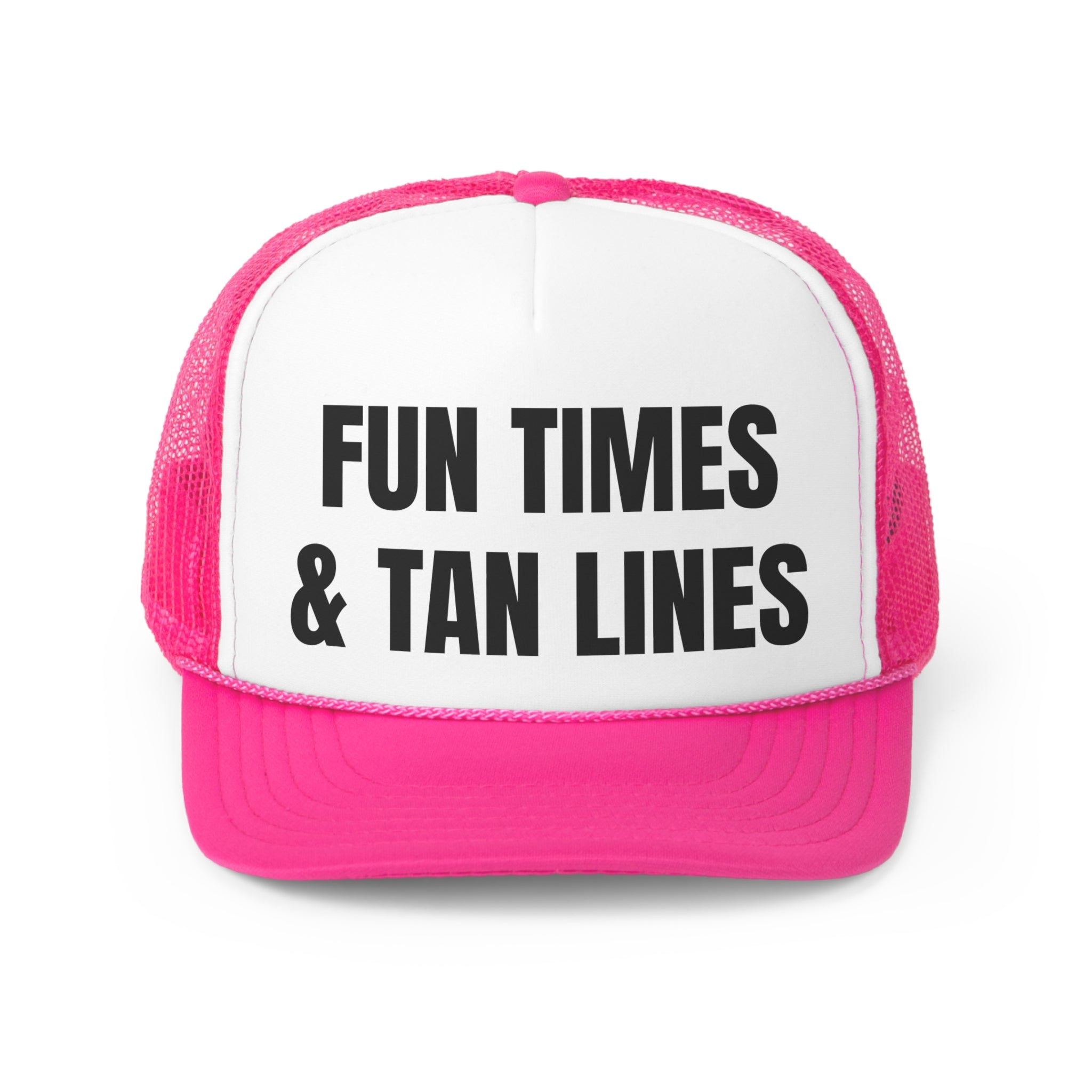 In summary, the Fun Times & Tan Lines Funny Trucker Hat is the perfect blend of humor, style, and comfort. With its durable materials, adjustable fit, and eye-catching design, it's an accessory that you'll want to wear everywhere. Don't miss out on the chance to add this fun hat to your collection!