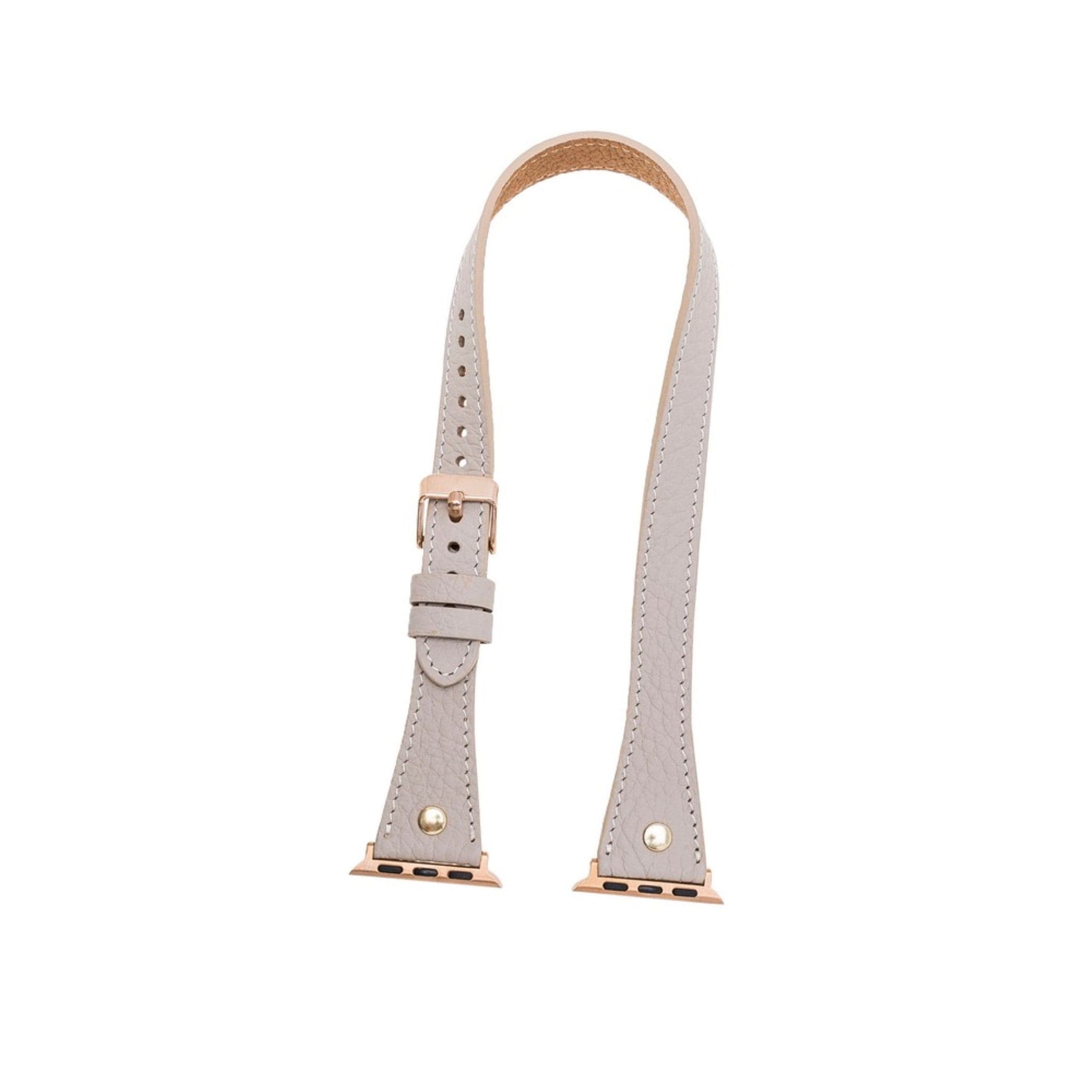 Introducing the Leeds Double Tour Slim with Gold Bead Apple Watch Leather Straps by Bouletta LTD. This exquisite watch strap is designed to elevate your Apple Watch experience, combining luxury and functionality. Made from premium full-grain leather, this strap not only enhances the aesthetic of your watch but also provides unmatched comfort and durability. The unique gold bead detail adds a touch of elegance, making it perfect for any occasion.