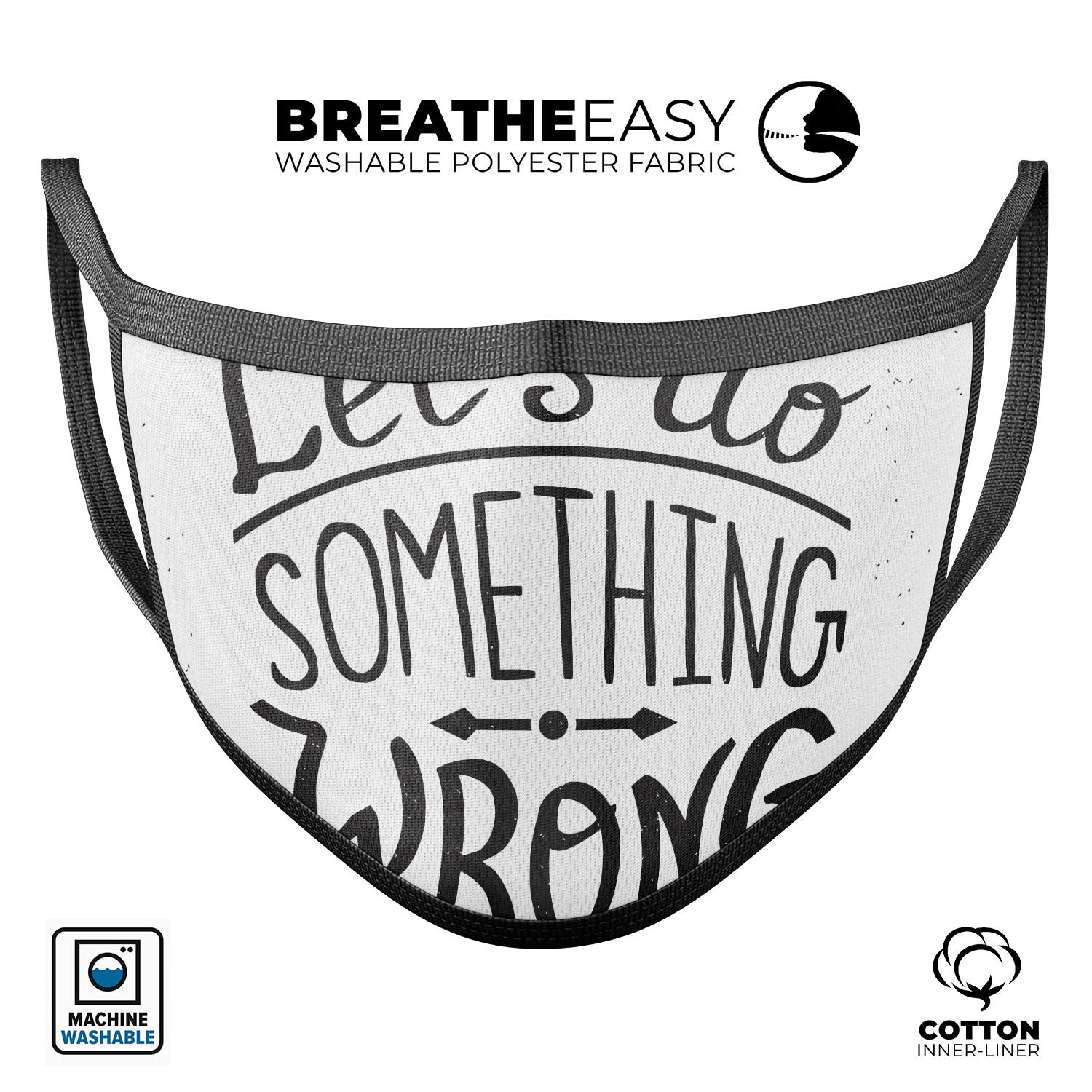 In summary, the Let's do Something Wrong - Made in USA Mouth Cover is the perfect blend of style, comfort, and functionality. With adjustable sizing, washable and reusable features, and a commitment to quality, this mouth cover is an essential accessory for anyone looking to stay safe while expressing their individuality. Order yours today and experience the difference!