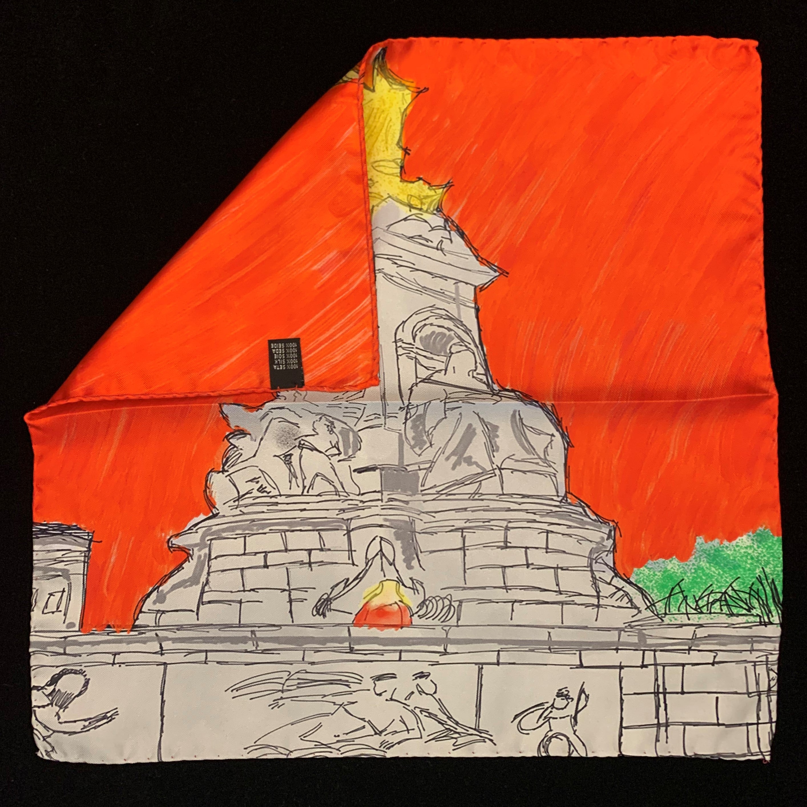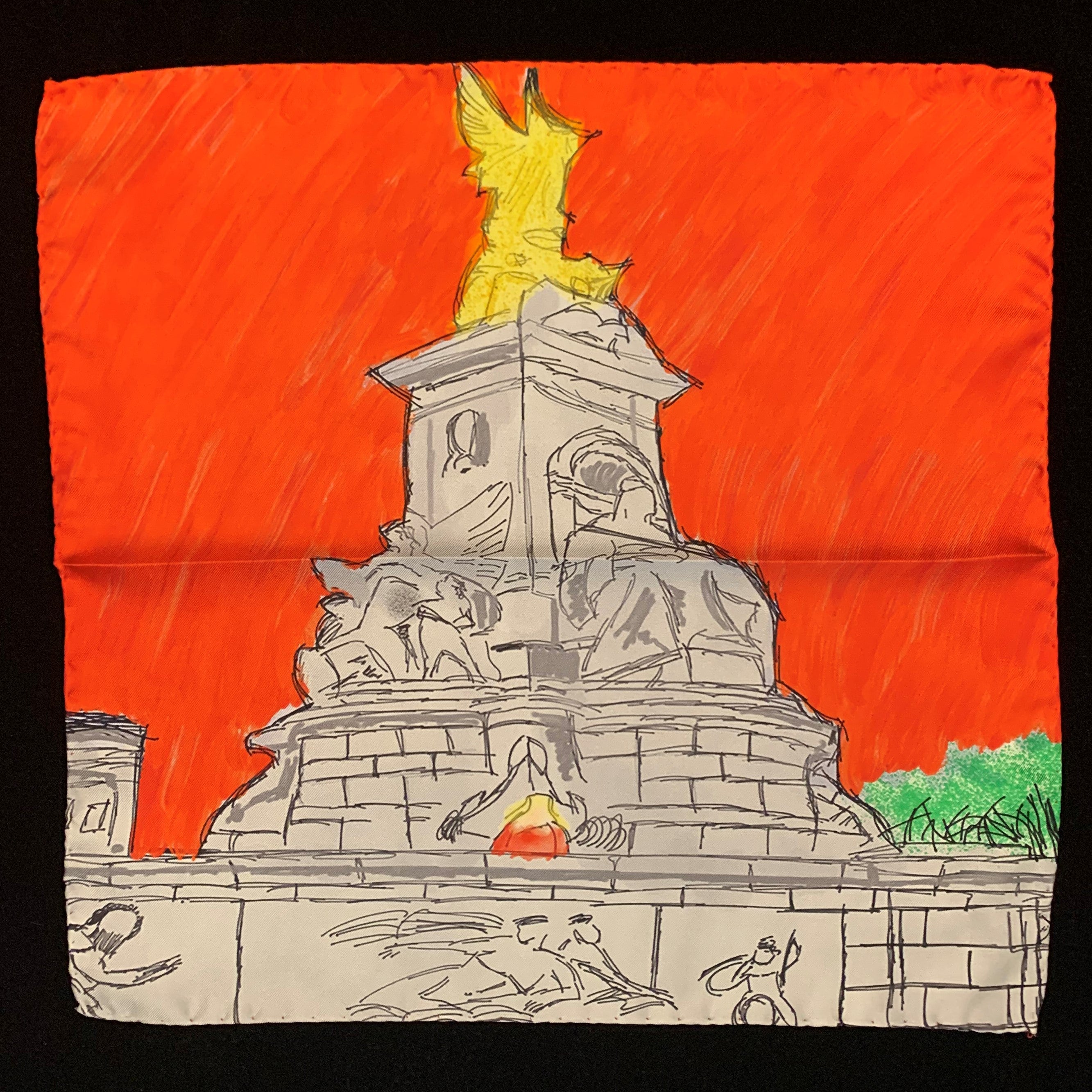 The hand sketched design of the Queen Victoria Memorial is a testament to the artistry and craftsmanship that goes into creating each pocket square. The detailed illustration captures the grandeur of the memorial, making it a conversation starter and a unique accessory that reflects your appreciation for art and history.