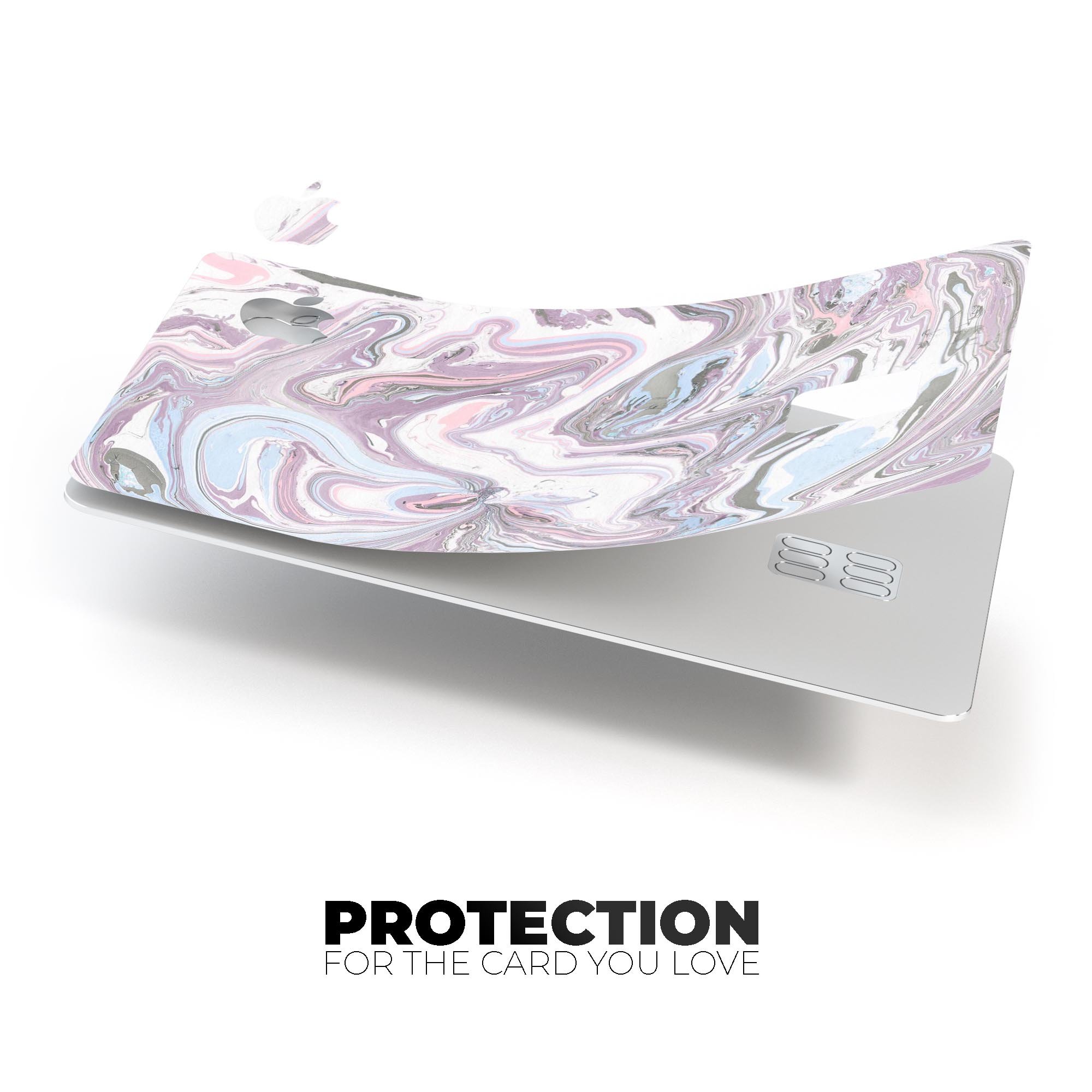 The Marbleized Swirling Soft Purple skin is crafted using a comprehensive three-layer production process that utilizes advanced 3M materials. This ensures that your Apple Card is shielded from scratches, scuffs, and other forms of damage. The patented Air-Release adhesive backing allows for a bubble-free installation, making it easy for anyone to apply without any hassle.