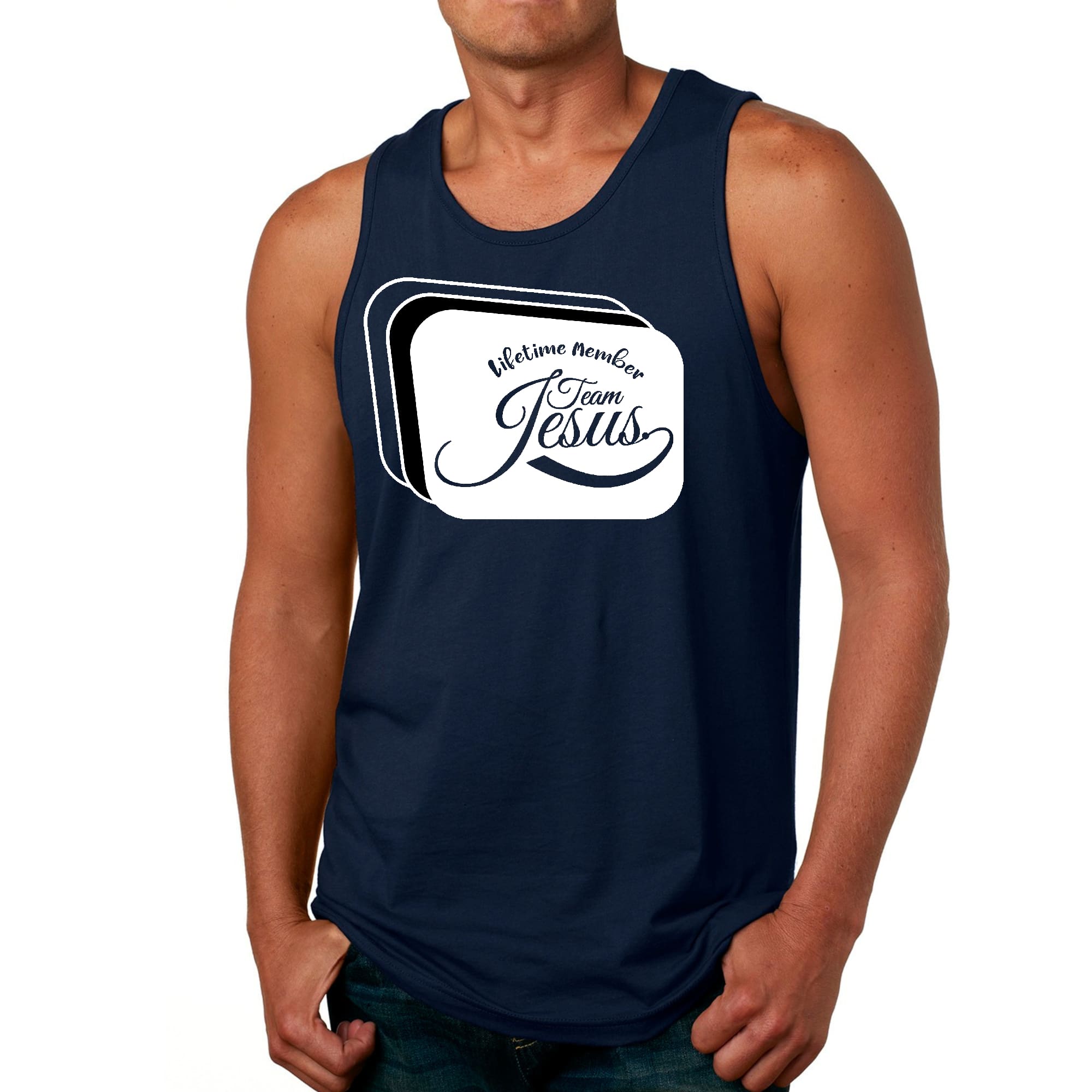Introducing the Men's Fitness Tank Top Graphic T-shirt, a must-have for those who proudly identify as Lifetime Members of Team Jesus. This stylish and comfortable tank top is designed for fitness enthusiasts who want to express their faith while staying active. Made from high-quality preshrunk cotton, this tank top ensures that you enjoy a soft feel against your skin, even after multiple washes. The preshrunk feature means that you can wash it without worrying about it shrinking or losing its shape, making it a reliable addition to your workout wardrobe.