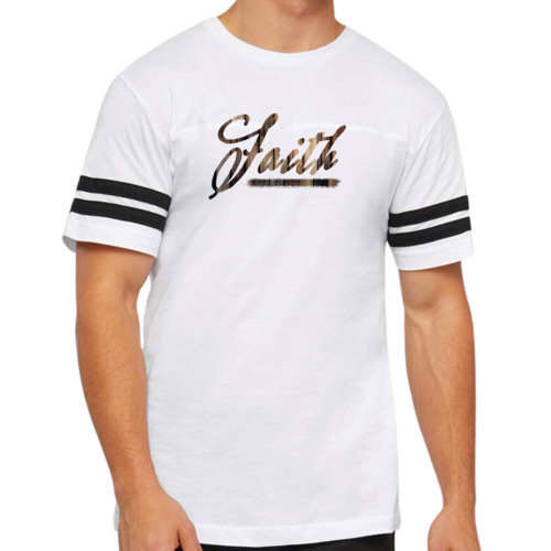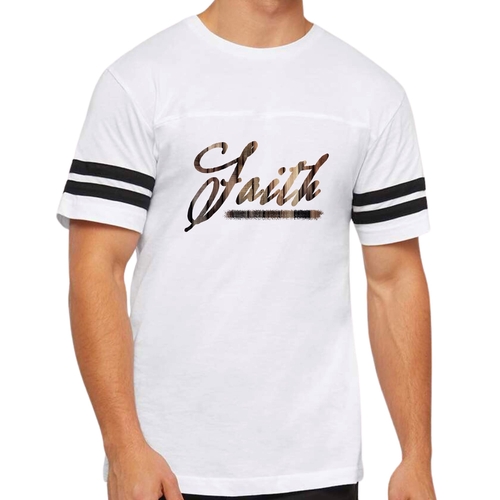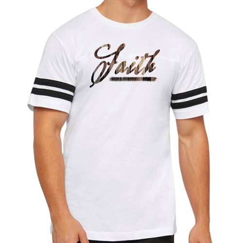 This t-shirt features a vintage-inspired design that is sure to turn heads. The Faith Brown Wood Grain Print adds a unique touch, making it a standout piece in your wardrobe. The two contrast stripes on the sleeves enhance the sporty look, making it perfect for both athletic and casual wear. Whether you're at the gym or lounging at home, this t-shirt will keep you looking stylish.