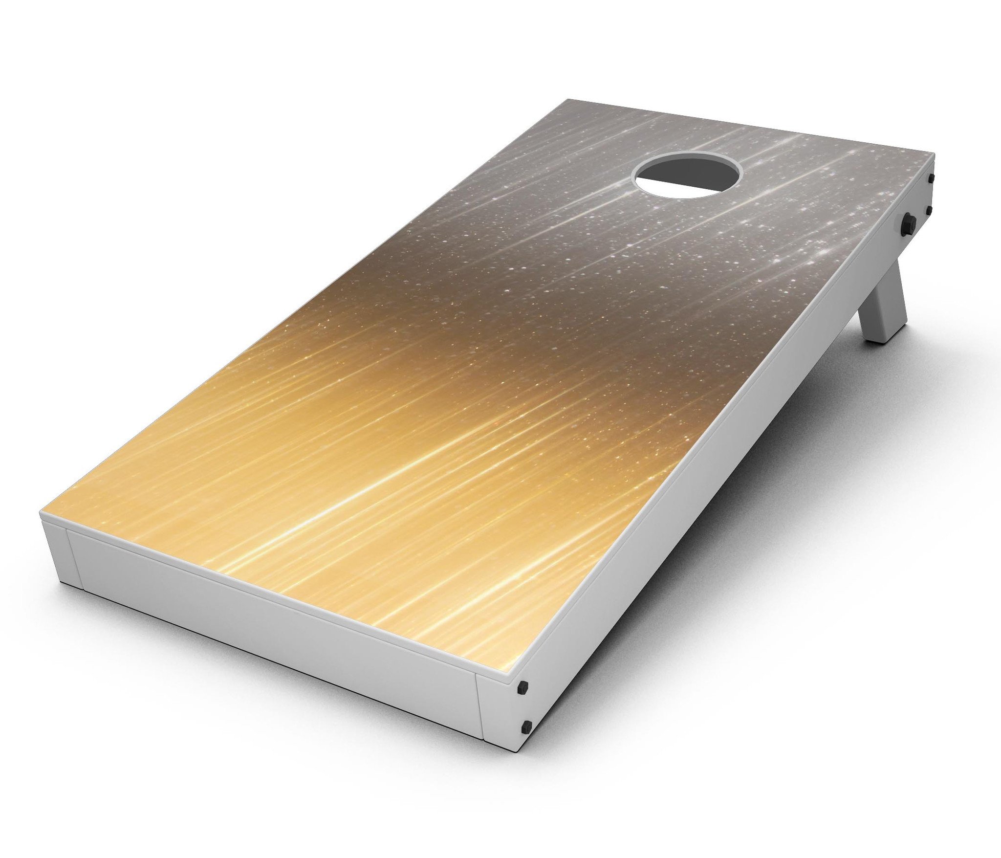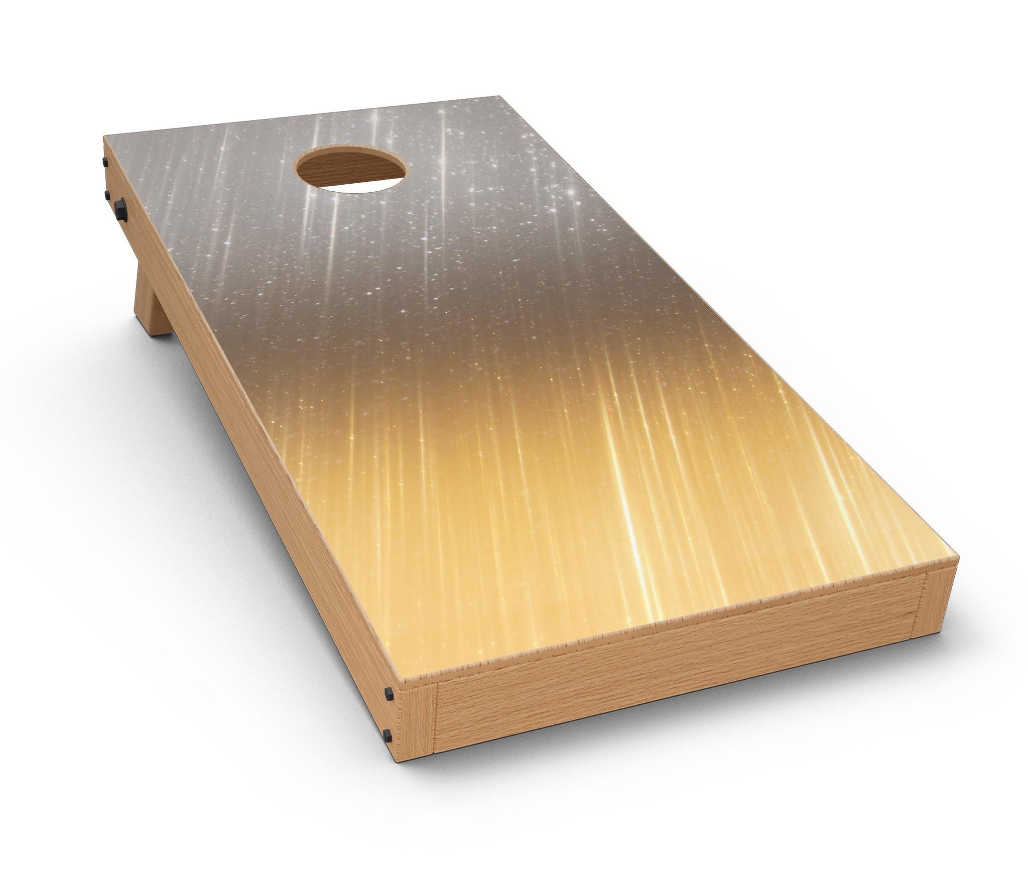Enhance your Cornhole game experience with our Scratched Gold and Silver Surface CornHole Board Skin Decal Kit. These premium vinyl wraps are designed specifically for Cornhole boards, providing a stylish and durable finish that will impress your friends and family. Measuring 24.5 inches in width and 48.5 inches in height, these decals offer ample material to ensure a perfect fit for your boards. Whether you're looking to refresh your existing boards or create a custom look, our decal kit is the perfect solution.