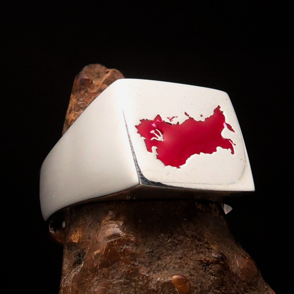 This mirror polished Sterling Silver Ring with the Flag of Soviet Union is not just a piece of jewelry; it is a meaningful gift for anyone who values history and heritage. Whether you are looking to treat yourself or searching for a thoughtful present for a loved one, this ring is a remarkable choice. Its unique design and historical significance make it a conversation starter and a cherished addition to any jewelry collection.