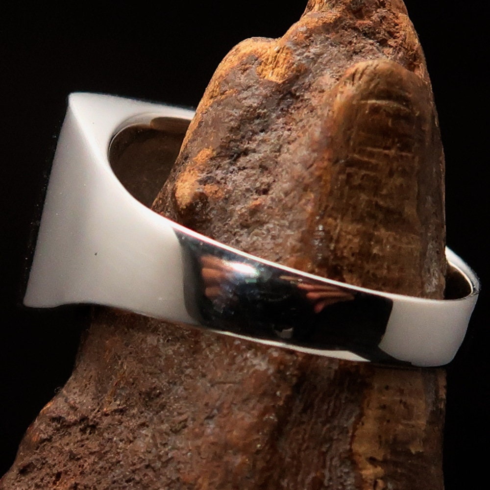 This Soviet Union Ring is a remarkable piece of jewelry that combines style and history, designed specifically for men who appreciate unique accessories. Crafted from high-quality mirror polished Sterling Silver, this ring not only looks sophisticated but also feels luxurious on the finger. The square-shaped design adds a contemporary twist, making it a versatile accessory suitable for various occasions, from casual outings to formal events.