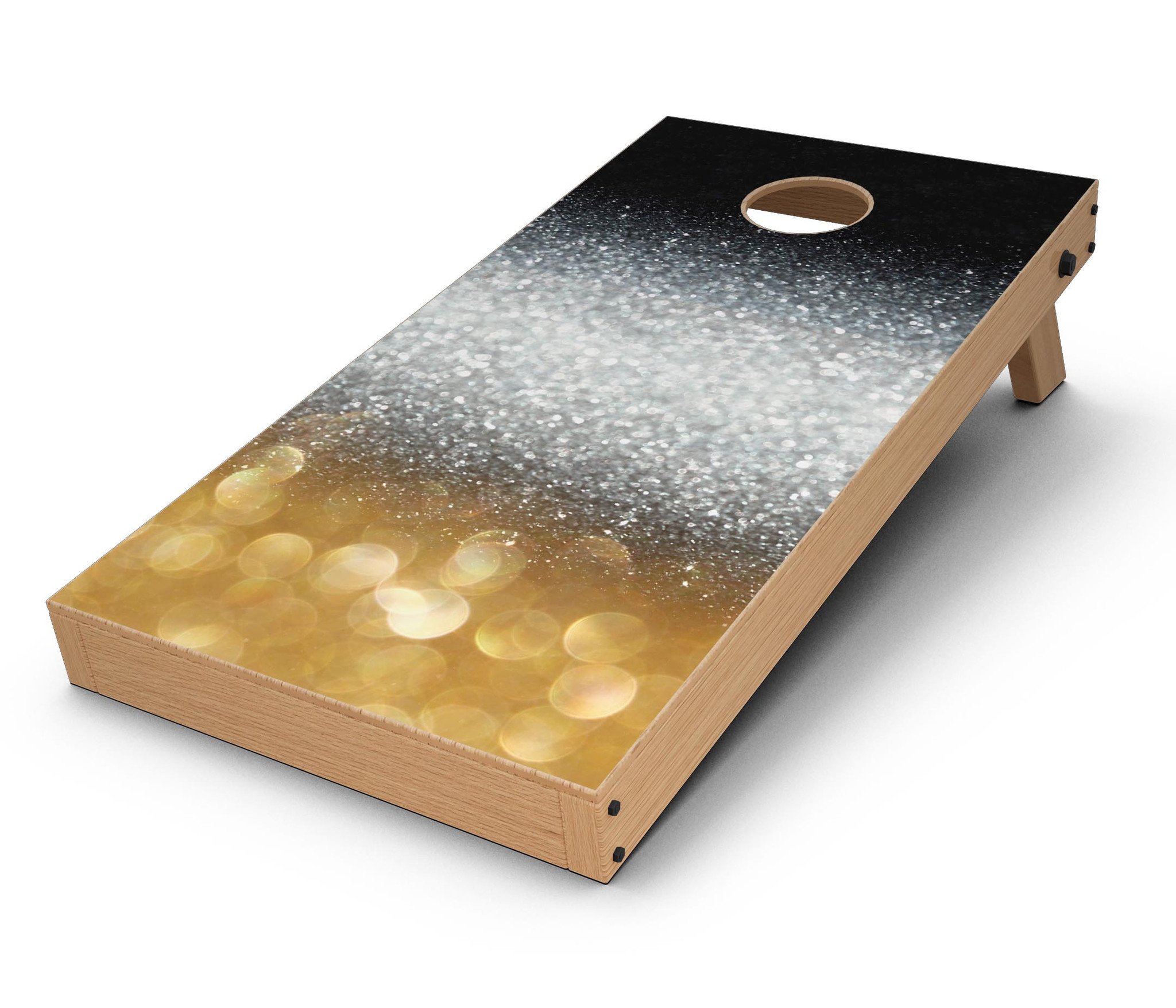The Unfocused Silver Sparkle with Gold Orbs Cornhole Board Skin Decal Kit is perfect for various occasions. Whether you're hosting a summer barbecue, a wedding reception, or a friendly competition, these decals will elevate your game setup. They also make a fantastic gift for Cornhole enthusiasts, allowing them to personalize their boards and showcase their style.