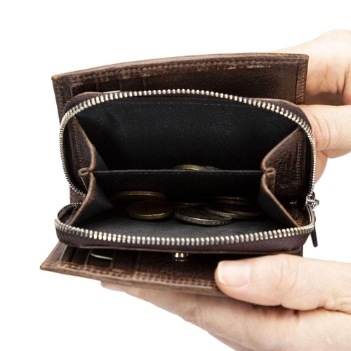 The middle compartment of the wallet can be connected to the sides with snap fasteners.