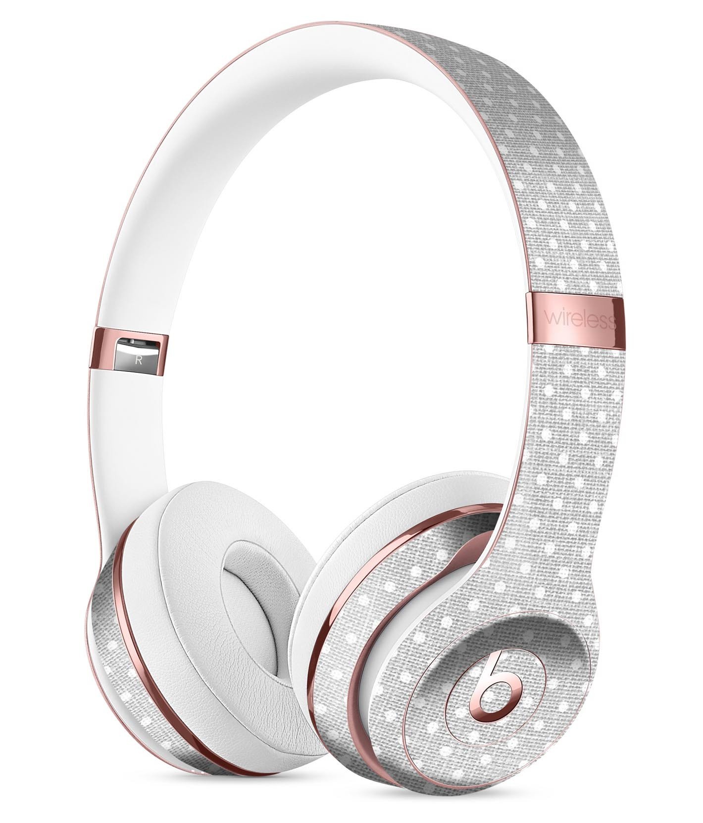 Add a touch of elegance and personality to your Beats by Dre Solo 3 Wireless Headphones with our White Micro Polka Dots Over Gray Fabric Full-Body Skin Kit. This innovative skin kit allows you to customize your headphones effortlessly, giving them a fresh look without adding any bulk. Made from high-quality vinyl, this skin not only enhances the aesthetic appeal of your device but also provides essential protection against scratches and everyday wear and tear.