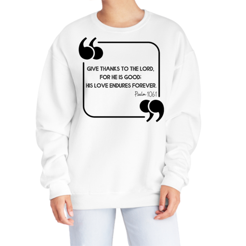Introducing our Womens Graphic Sweatshirt, a perfect blend of comfort, style, and faith. This sweatshirt features a striking black illustration that reads 'Give Thanks to the Lord', making it not just a piece of clothing, but a statement of gratitude and positivity. Crafted from a high-quality 50/50 Poly/Cotton blend, this sweatshirt is designed to provide you with the utmost comfort while ensuring durability for everyday wear.