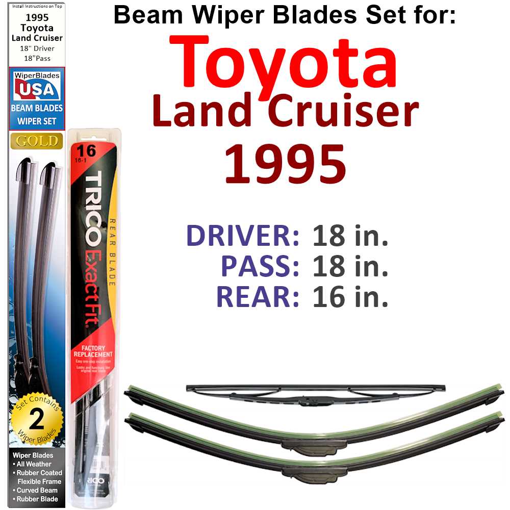 These wiper blades are custom assembled to fit your 1995 Toyota Land Cruiser perfectly. The set includes: