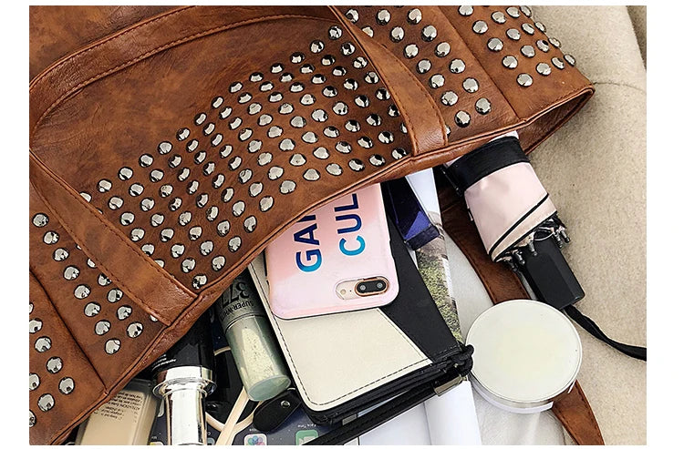 The Rivet Shoulder Bag is the ultimate accessory for modern women who value both style and functionality. This versatile bag can be used as a tote handbag, shoulder bag, or crossbody bag, making it suitable for a variety of occasions. Whether you're heading to work, going shopping, or enjoying a weekend outing, this bag is designed to meet your needs while keeping you fashionable.