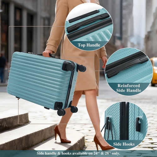 - Durable & Scratch-Resistant Design: Made from lightweight yet durable ABS material, the hardshell suitcase features a textured vertical stripe and diagonal pattern that effectively resists scratches. It minimizes damage from bumps and friction, helping extend the life of your luggage.