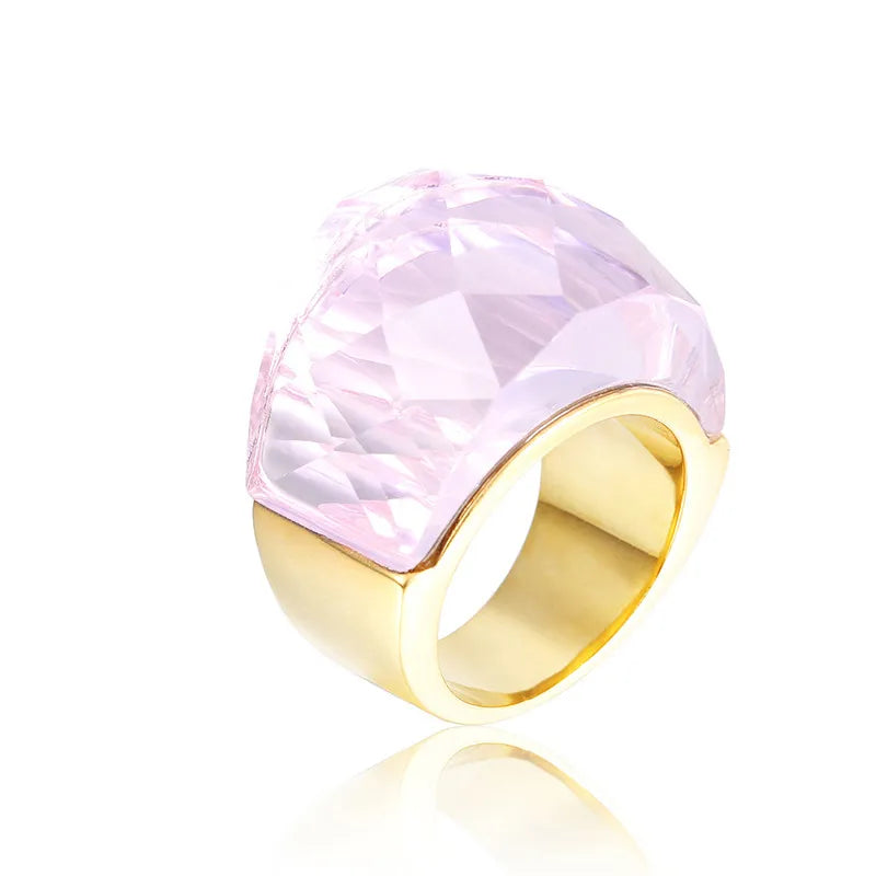 The Large Crystal Glass Stone Ring features a round shape that is both classic and trendy. Its fashion-forward design makes it an ideal choice for women who want to express their unique style. Whether you're attending a party, a wedding, or simply going out with friends, this ring will elevate your look and draw attention.