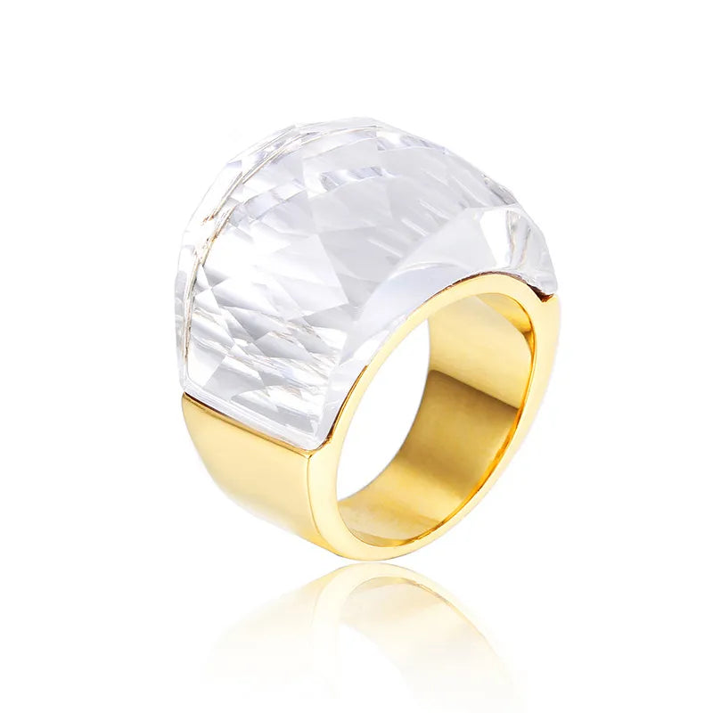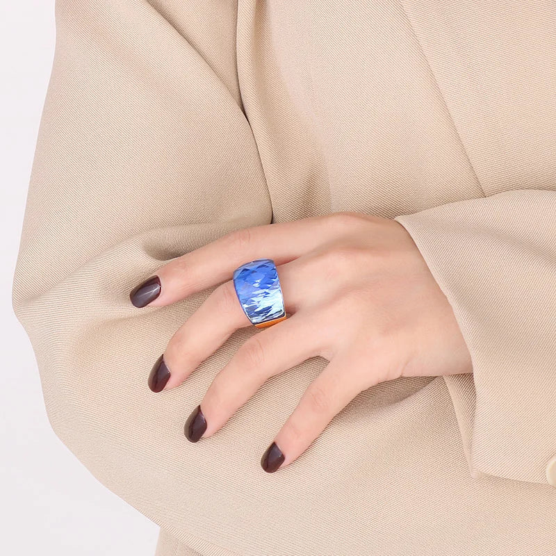 In summary, the Large Crystal Glass Stone Ring is a fashionable and versatile piece of jewelry that every woman should have in her collection. Its stunning design, durable materials, and compatibility with various outfits make it a perfect choice for any occasion. Don't miss out on the opportunity to own this beautiful ring!