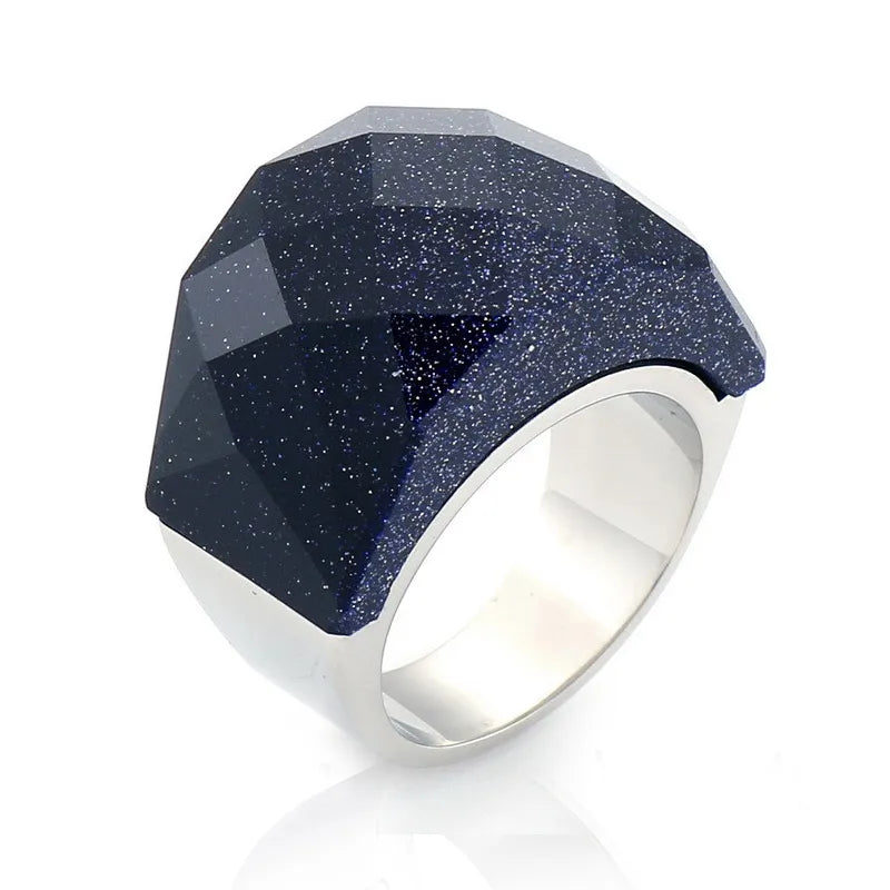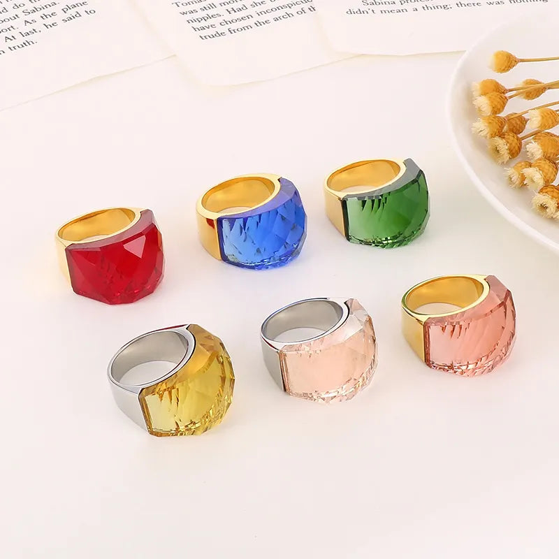 Originating from Mainland China, this ring is made from high-quality stainless steel, ensuring durability and longevity. The glass material used for the stone is not only visually appealing but also lightweight, making it comfortable to wear throughout the day. The ring is designed to be all-compatible, meaning it can be worn with any outfit, whether casual or formal.