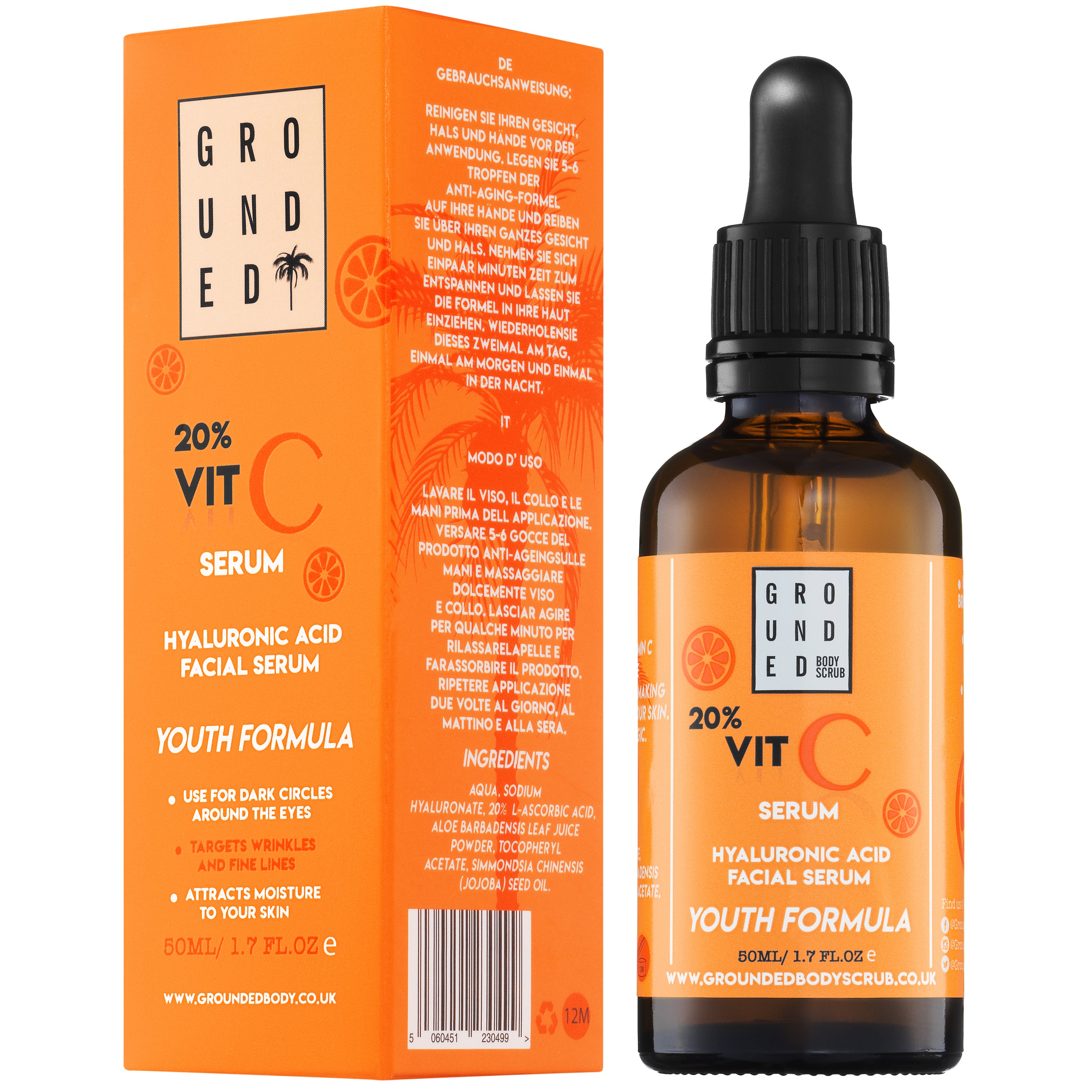 Turn back time with our revolutionary Vitamin C and Hyaluronic Acid Anti-Ageing Serum. This powerful serum is designed to rejuvenate your skin, providing hydration and a youthful glow. With a potent concentration of 20% Vitamin C, it works to boost collagen production, brighten dark circles, and combat the signs of aging. The addition of Hyaluronic Acid ensures that your skin remains plump and hydrated, while Aloe Vera soothes and repairs any damage.