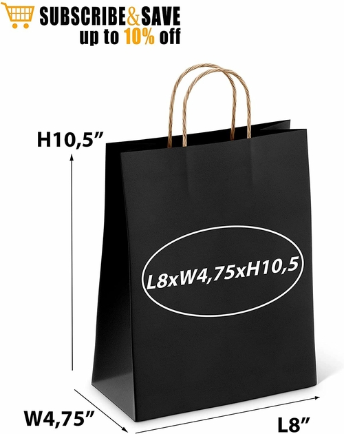Black Shopping Bags Bulk Pack of 25 Large Paper Bags 8 x 4.75 x 10.5