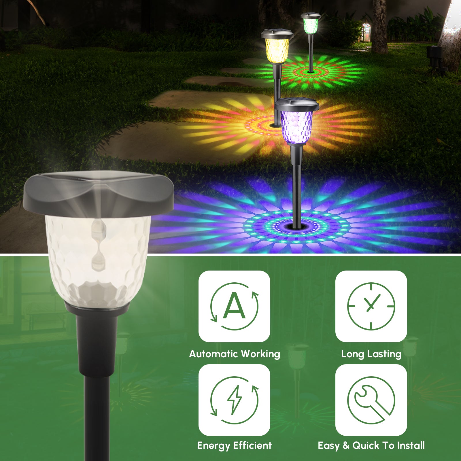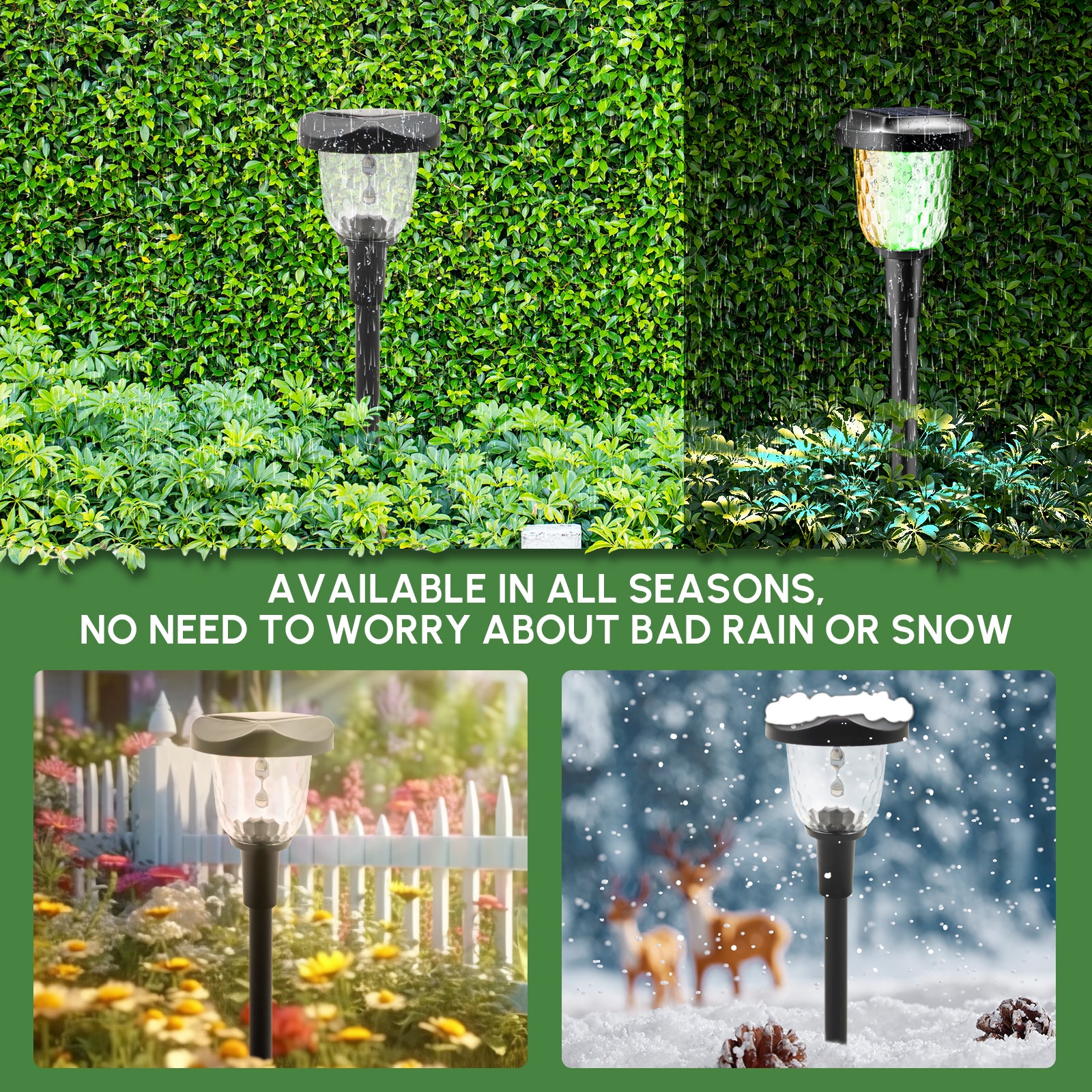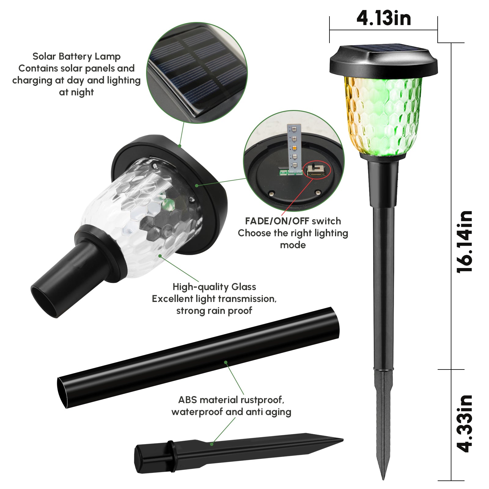 Constructed from high-quality ABS plastic and stainless steel, these outdoor solar landscape lights are built to withstand the elements. The crystal clear glass shade is not only aesthetically pleasing but also durable, ensuring a longer service life compared to standard lights. With an IPX65 waterproof rating, these lights are resistant to rain, heat, and other weather conditions, making them a reliable choice for year-round outdoor use.