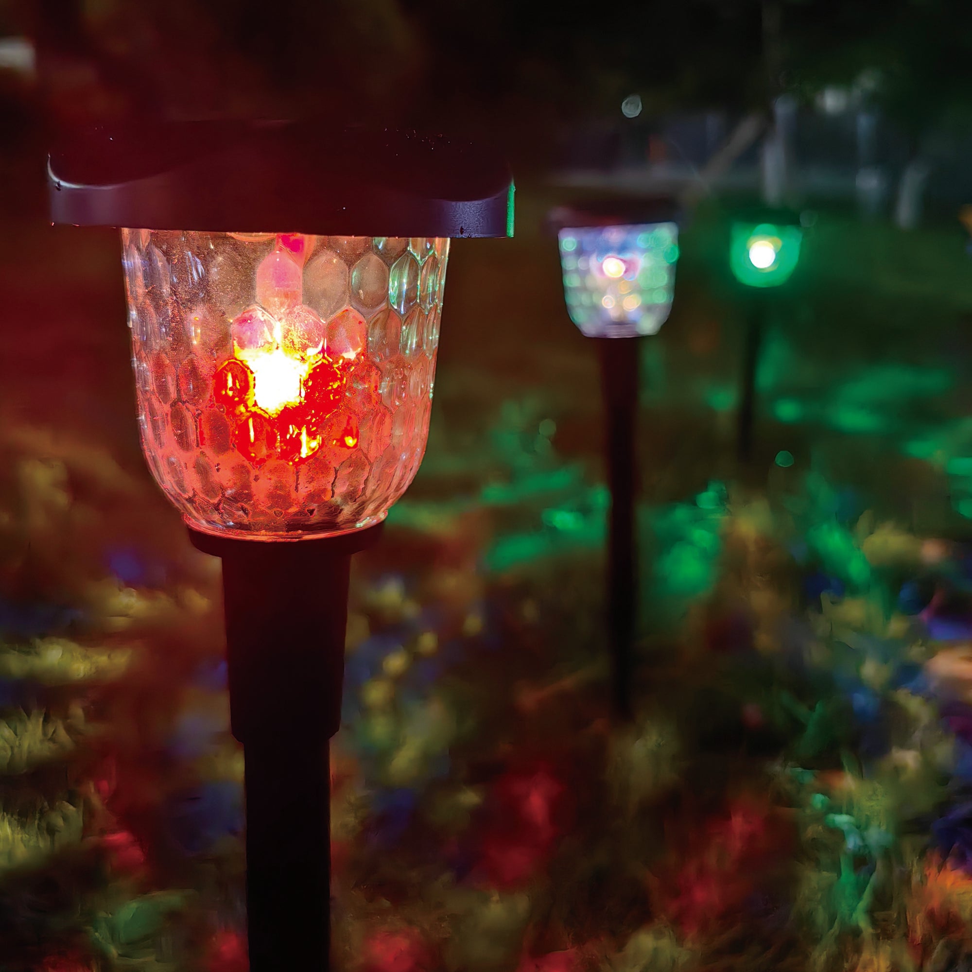 Enhance your outdoor space with our Color Changing LED Solar Lights, designed to bring a magical ambiance to your garden or pathway. These lights feature a crystal style glass shade that not only looks elegant but also showcases a beautiful light pattern on the ground, making your lawn more attractive at night. With their vibrant colors and enchanting glow, these solar lights are perfect for creating a romantic atmosphere during evening gatherings or simply enjoying a peaceful night outdoors.