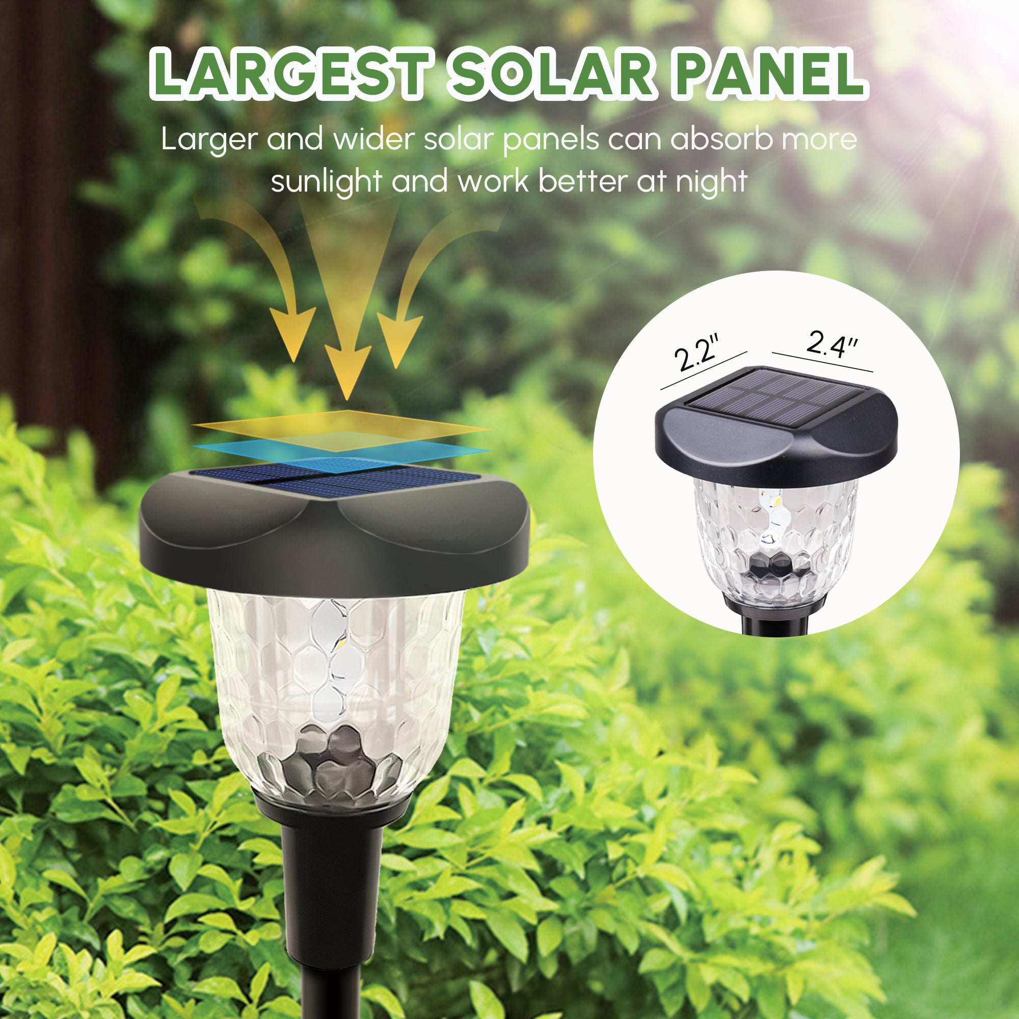Equipped with a polycrystalline solar panel, these solar pathway lights are designed for maximum efficiency. The high-quality solar panel reflects more light, significantly improving the overall light output. This means that your lights will automatically turn on at night and off at dawn, providing illumination for up to 8-10 hours on a full charge. Enjoy the convenience of solar power without the hassle of wiring or electricity costs.