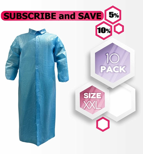 Disposable Gowns X-Large. Pack of 10 Blue Lab Coat Men 40 gsm