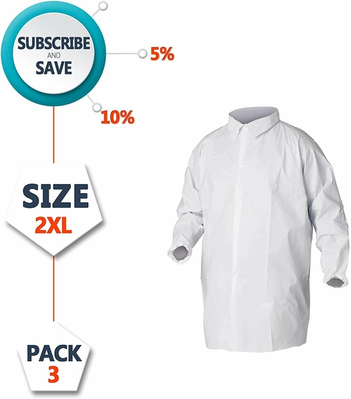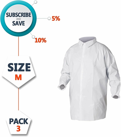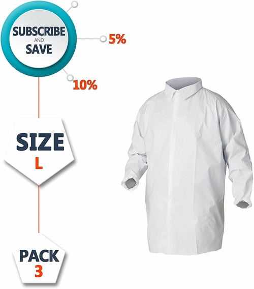 White Microporous Lab Coats with Snaps Front, Long Sleeves, Elastic Cuffs, Single Collar, No Pockets.