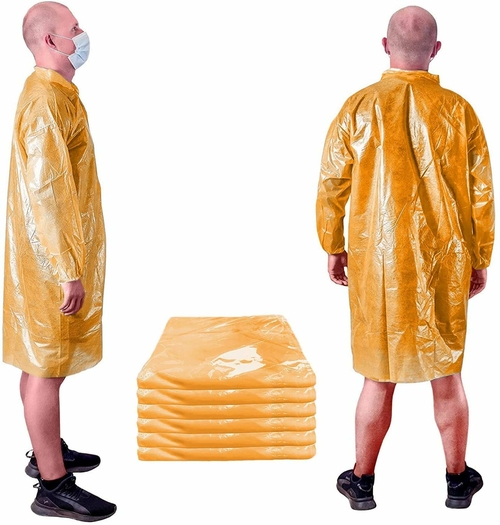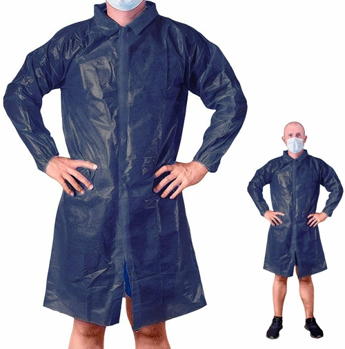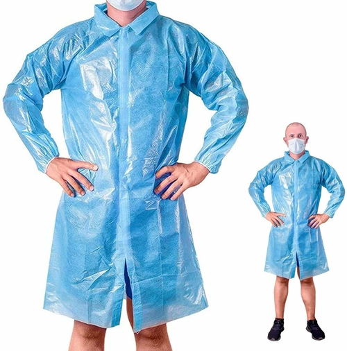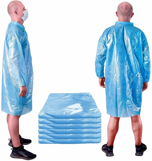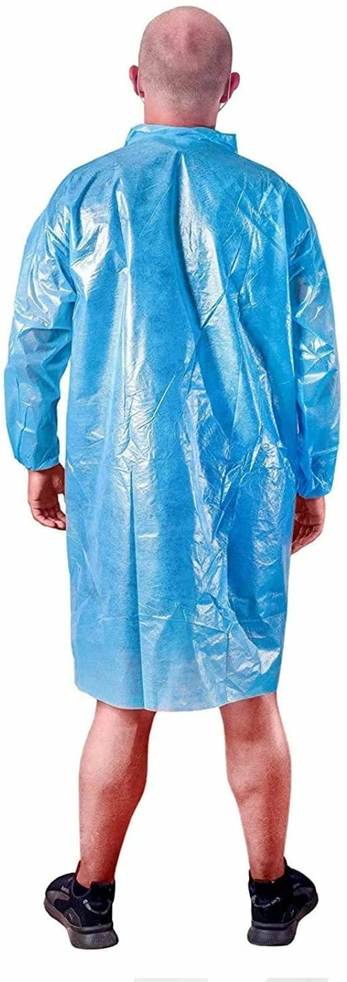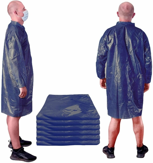 Waterproof Blue Polyethylene Laboratory Gown with Elastic Wrists for General Use.