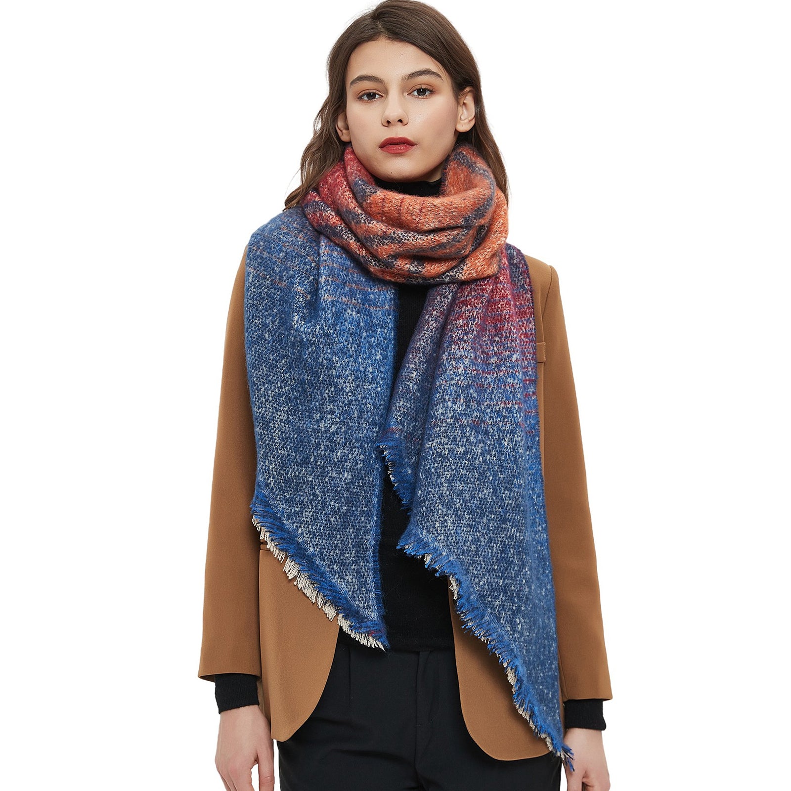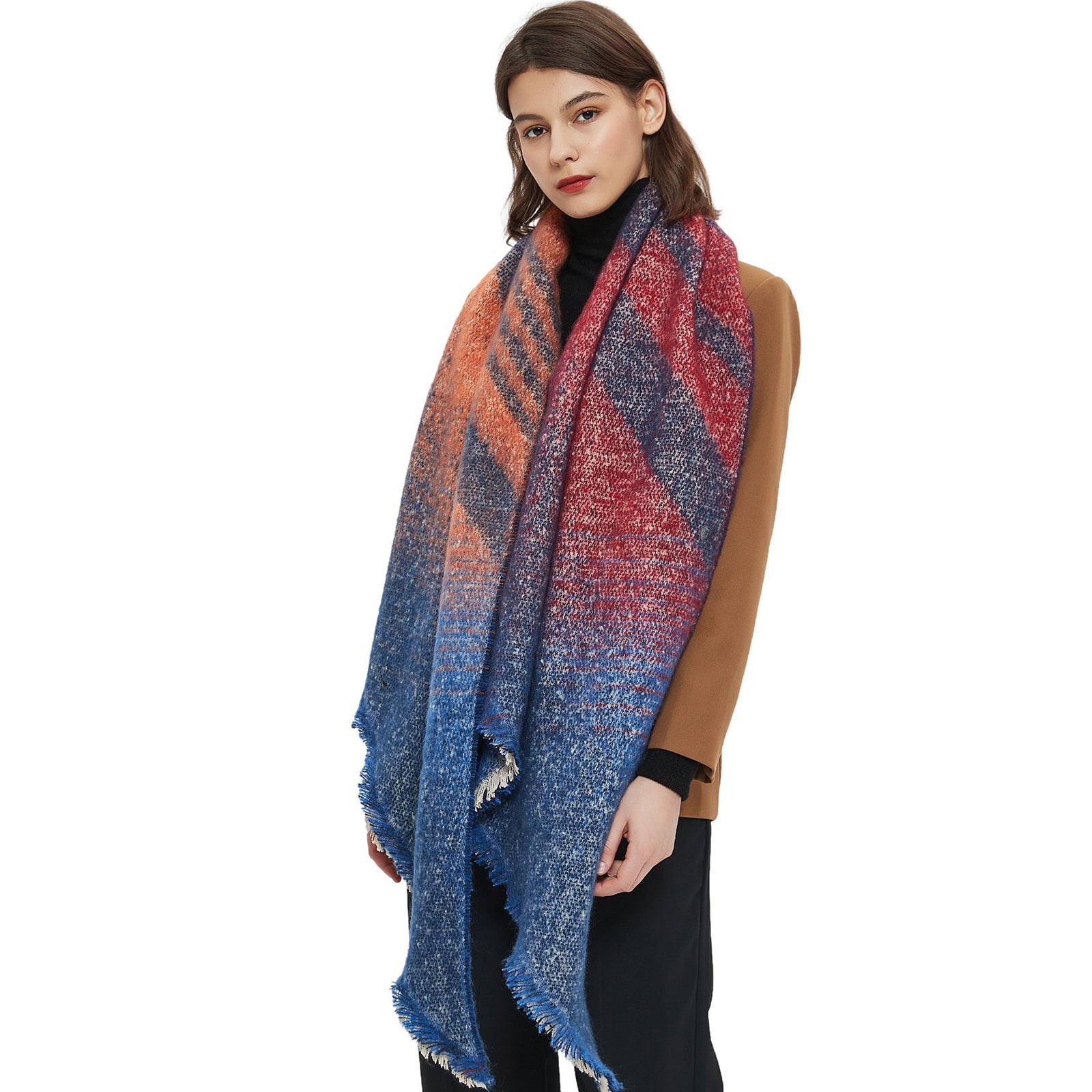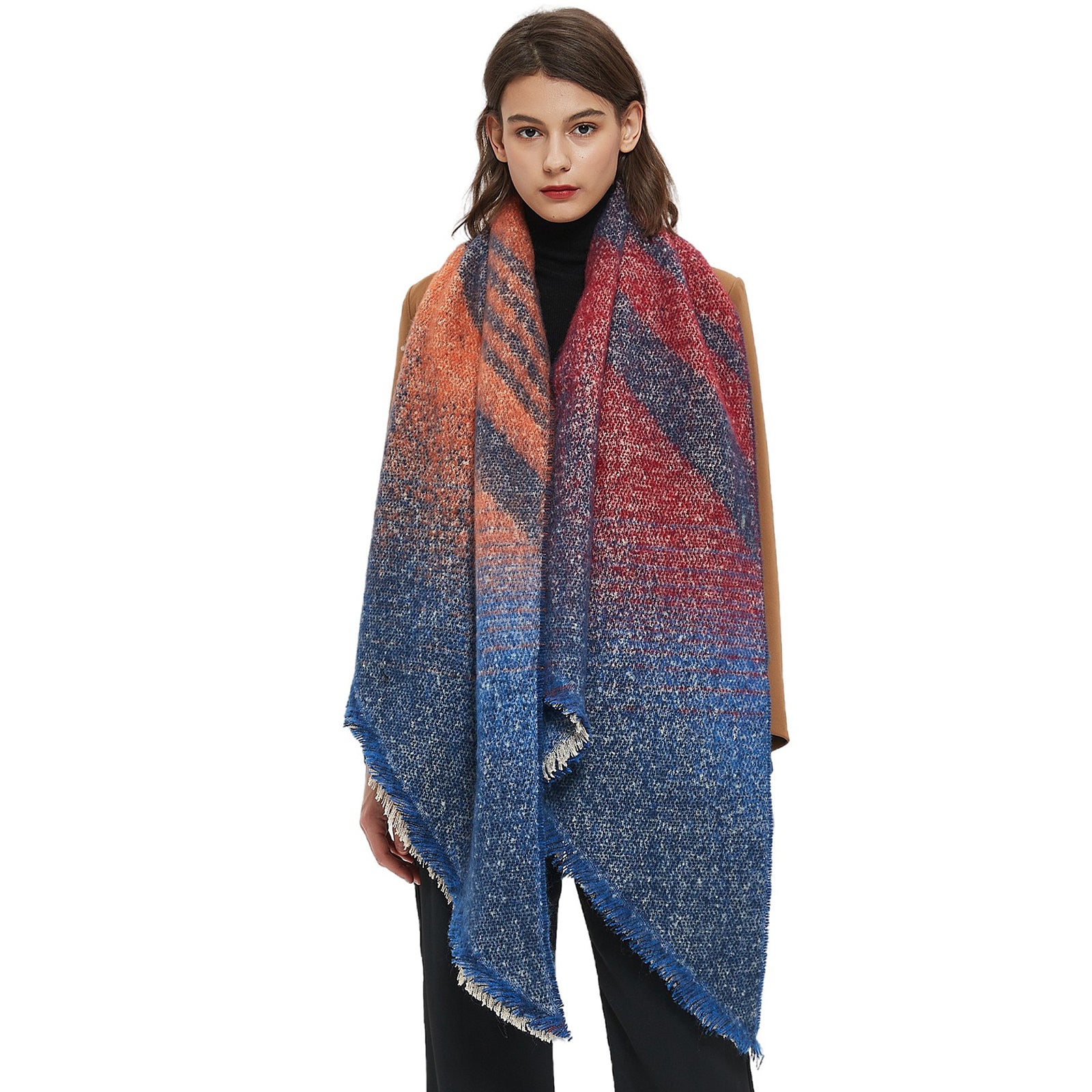 The Women's Fall Winter Scarf is available in a variety of colors, including Red-Yellow, Blue-Gray, and Blue-Khaki. Choose the color that best suits your style or pick a few to mix and match with your winter outfits. With such a wide selection, you're sure to find the perfect scarf to elevate your winter fashion.