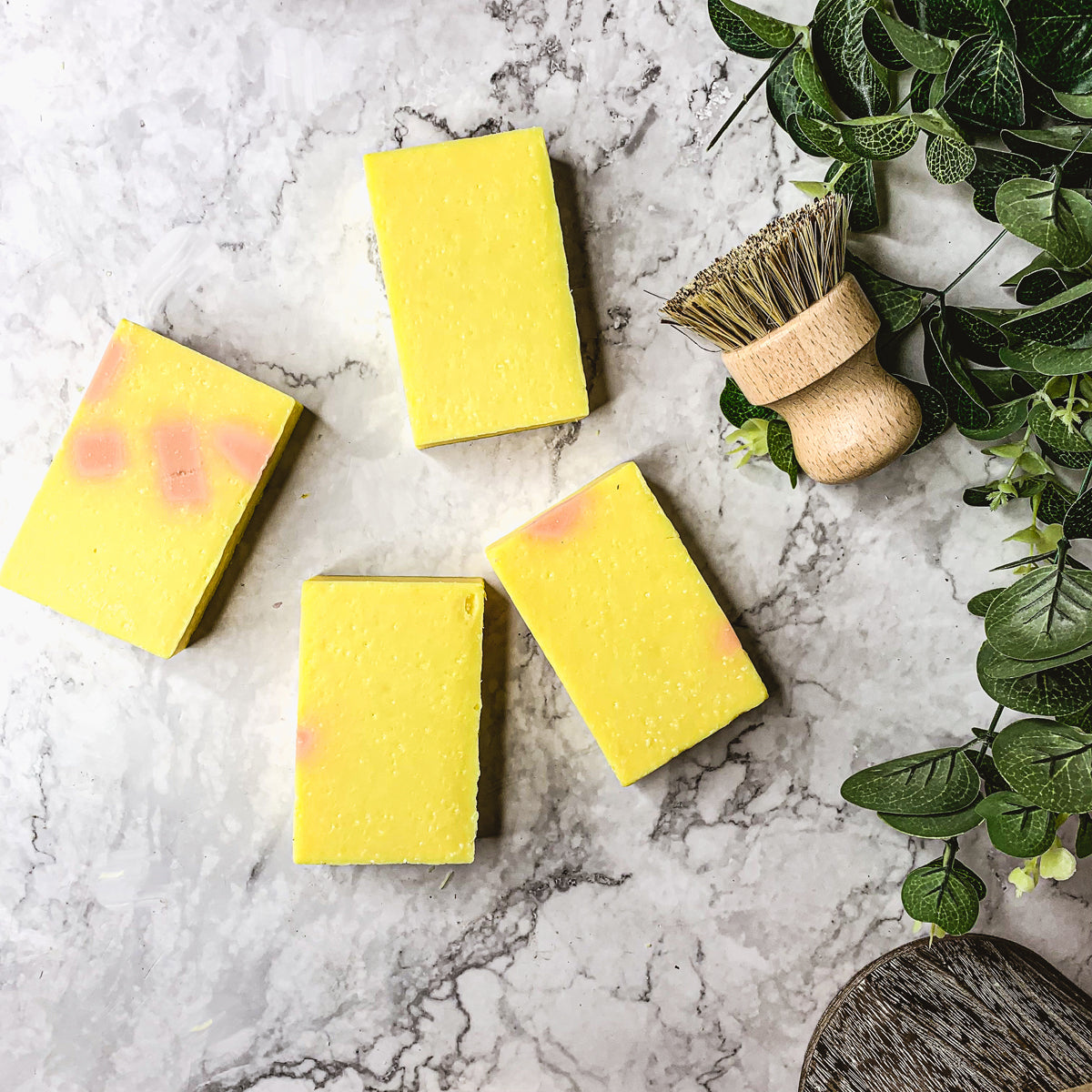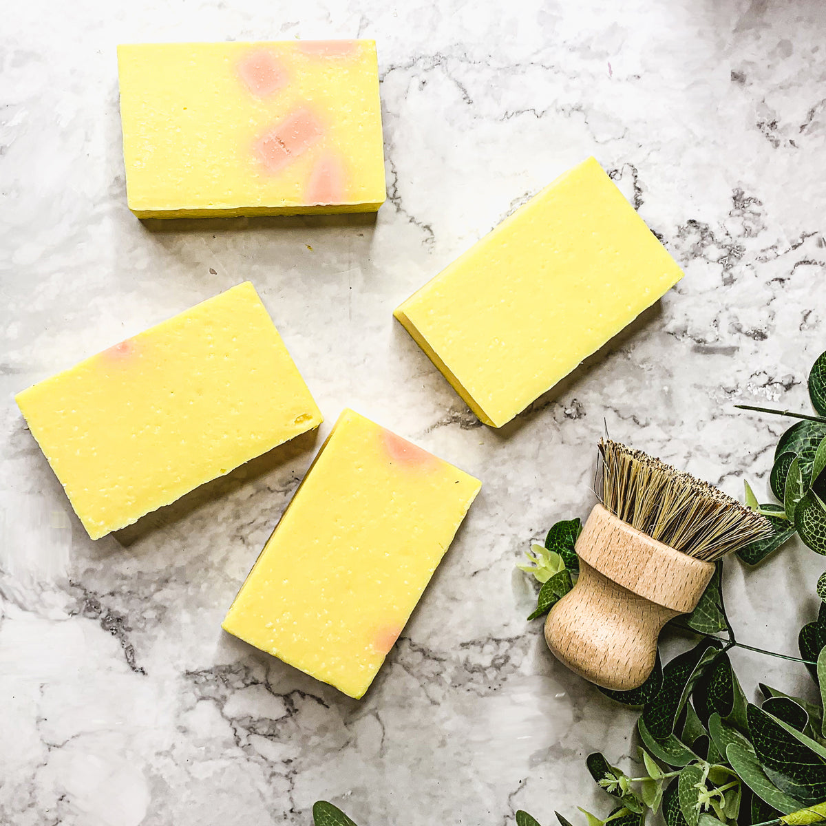 During the production of our soap, sodium hydroxide is heavily diluted with water and mixed with the oils to create a thick mixture. This mixture is then poured into molds and allowed to harden for 24 hours before being set to cure for 4-6 weeks. Throughout this curing process, the soap bars lose water weight, and the sodium hydroxide is completely dissolved, resulting in a safe and effective soap for your skin.