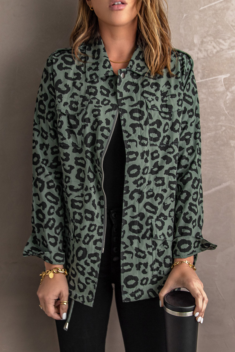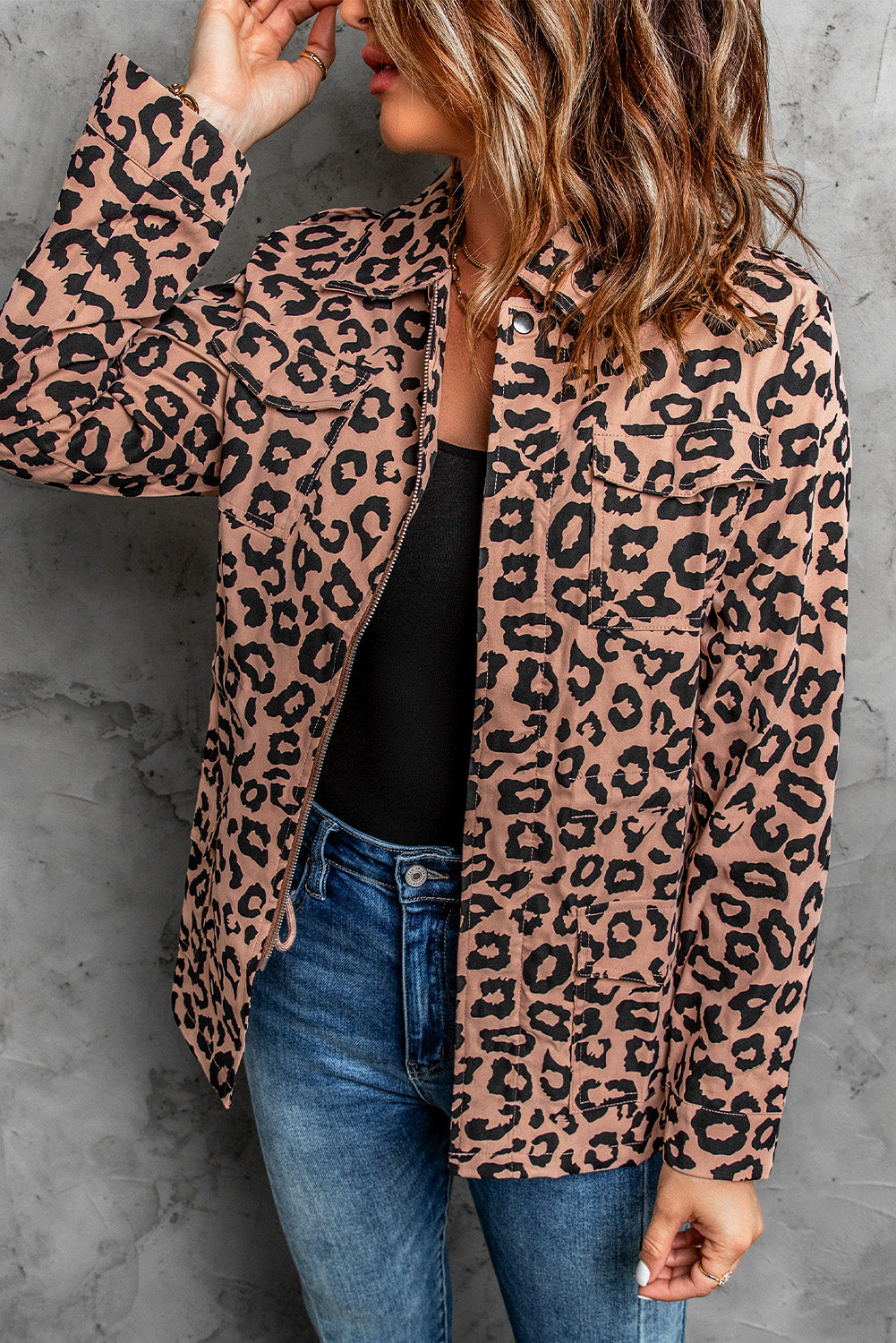 Introducing the Brown Lapel Collar Zipper Drawstring Leopard Coat, a must-have addition to your wardrobe for those who love to stand out. This fashionable leopard print coat is designed to make you the center of attention, whether you're heading out for a casual day or dressing up for a night out. With its unique design and practical features, this coat is perfect for any occasion.