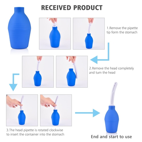 Item Type: Set Model Number: A11302 Ingredient: Silicone/TPE NET WT: 310ml Quantity: 1 piece Size: 310ml Color: Blue and white Function: Anal Cleaner,vaginal washing,sexy toy Suit for : Anus Cleaning