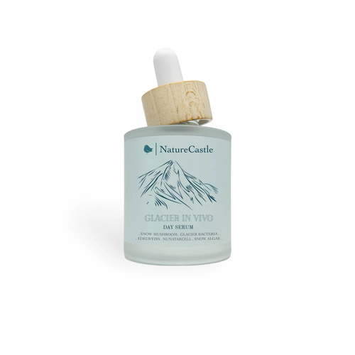 NatureCastle’s Glacier Hydration Serum is a deeply hydrating blend that refreshes and revitalizes your skin. Infused with Glacier Water and Snow Algae, this serum provides intense moisture and protects skin cells. Snow Mushroom Hyaluron and peptides deliver deep hydration and support skin elasticity. Malachite and Ectoin enhance skin protection, while Edelweiss Stem Cells and Ergothioneine balance the skin barrier and promote a healthy complexion. Perfect for all skin types, our Glacier Hydration Serum transforms your skincare routine, delivering visible results and long-lasting hydration.