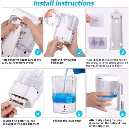 4.SUITABLE FOR-Liquid soap, body lotion, shampoo, cleaner and so on.This is a hands-free soap dispenser that works well as long as you do not use a too thin liquid in it. It dispenses the soap each time and does not drip or leak. More place can use-Perfect to use at bathrooms, kitchens, office, school,airports, hospital, hotel and restaurant and other public places. Hand sanitizer is not suit for it.