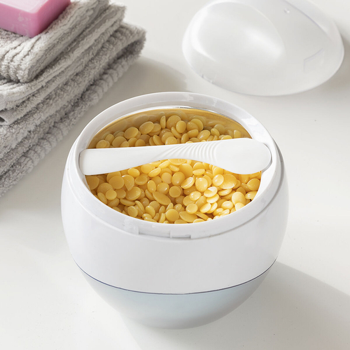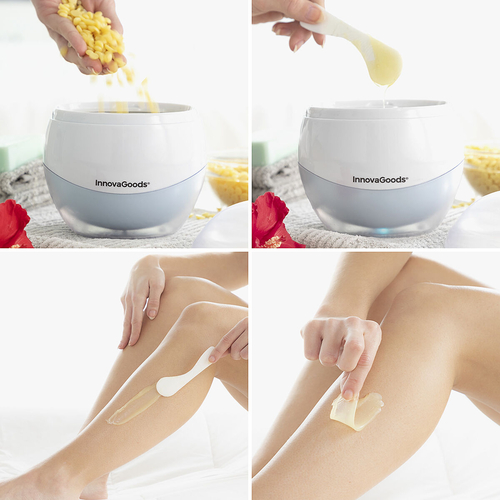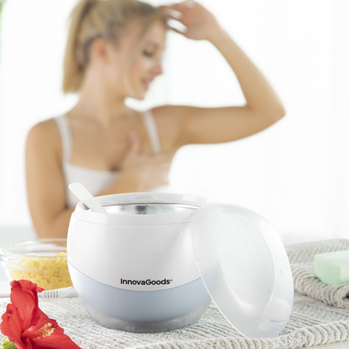 A practical wax heater for comfortable hair removal at home giving a professional result that is less expensive. A long-lasting hair removal that effectively removes hair and leaves the skin soft and clean.This compact and reusable electric heater is very easy to use: you simply place the wax inside, close the lid and plug it in. The heating system will melts the wax in about 30 min and will keep it at the ideal temperature. While it is being heated (the time may vary depending on the amount and type of wax), the LED on the base will flash, and when the LED turns off, the wax is ready.If you lower the temperature, the LED will flash again and the wax will heat up again automatically. It includes a spatulafor applying and removing the wax and it has slots which hold the spatula.The spatula should be used to apply the wax on the body area, and should eb applied in the direction of hair growth, then wait about 30-60 seconds until the wax is fully dry, then remove it with force in a single pull in the opposite direction to the hair growth and pull it out from the roots.The heater has 120 W power, with a capacity of 450 ml and reaches a maximum temperature of 80 ºC. Suitable for legs, underarms, bikini line and other parts of the body. Cleaning excess wax with body oil or similar is recommended. Excess wax inside the heater can be reused.