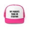 Wearing a funny trucker hat is not just a fashion choice; it's a way to express your personality and connect with others who share your sense of humor. Join the trend and make a statement with the My Parents Think I'm Studying Funny Trucker Hat. It's more than just a hat; it's a reflection of who you are and what you find amusing.
