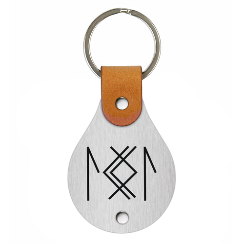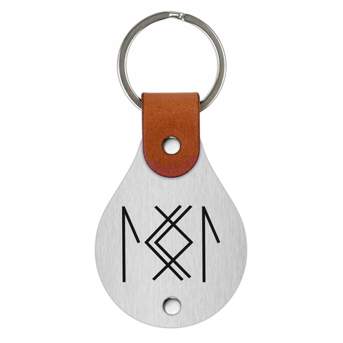 Handcrafted leather keychain with a stainless steel plate, engraved with the picture – Runic formula for enhancing female attractiveness.