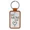 Handcrafted leather keychain with a stainless steel plate, engraved with the picture – Best mom ever.