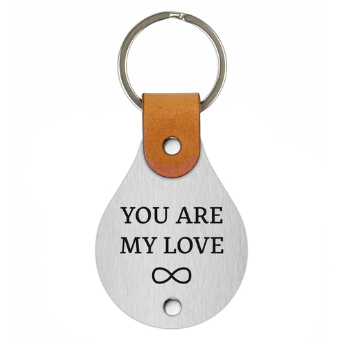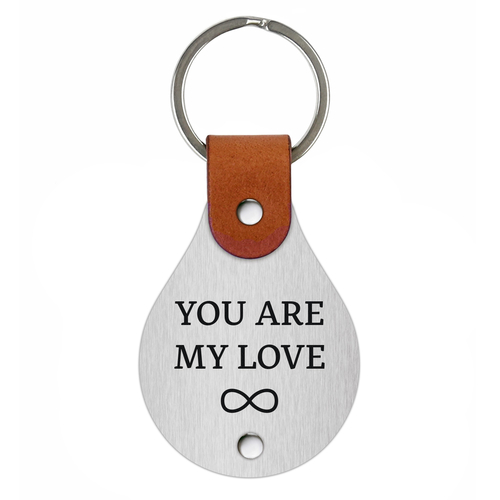 Handcrafted leather keychain with a stainless steel plate, engraved with the picture – You are my love.