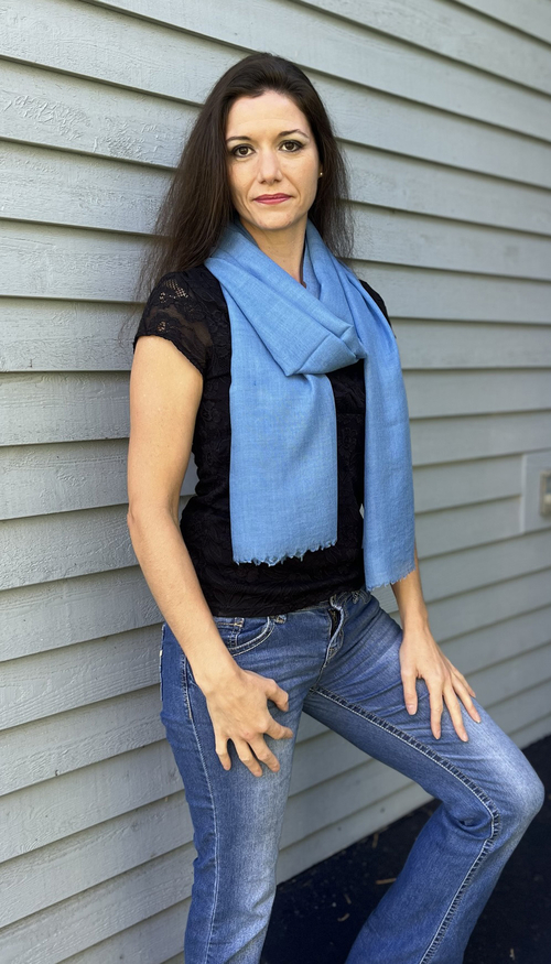 Eyelash fringe ends. Breathable, packable scarf, all weather scarf made with natural fibers.
