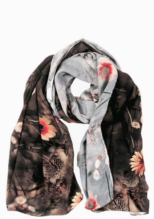 Transition into spring with this double-sided, digitally printed, and sophisticated floral scarf.