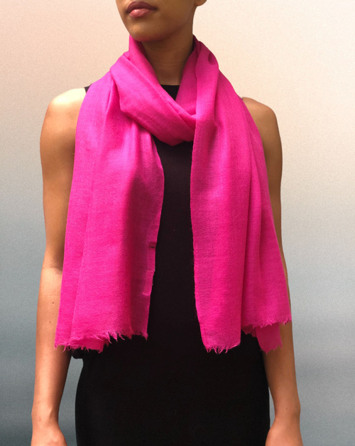 Eyelash fringe ends. Breathable, packable scarf, all weather scarf made with natural fibers.