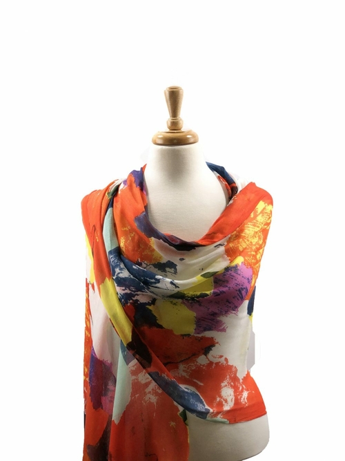 Screen print scarves in vibrant colors and gorgeous prints! The scarves have a soft and light feel and the color combinations are very pleasing. It can be worn as a scarf, a wrap or a pareo. Beach wear!